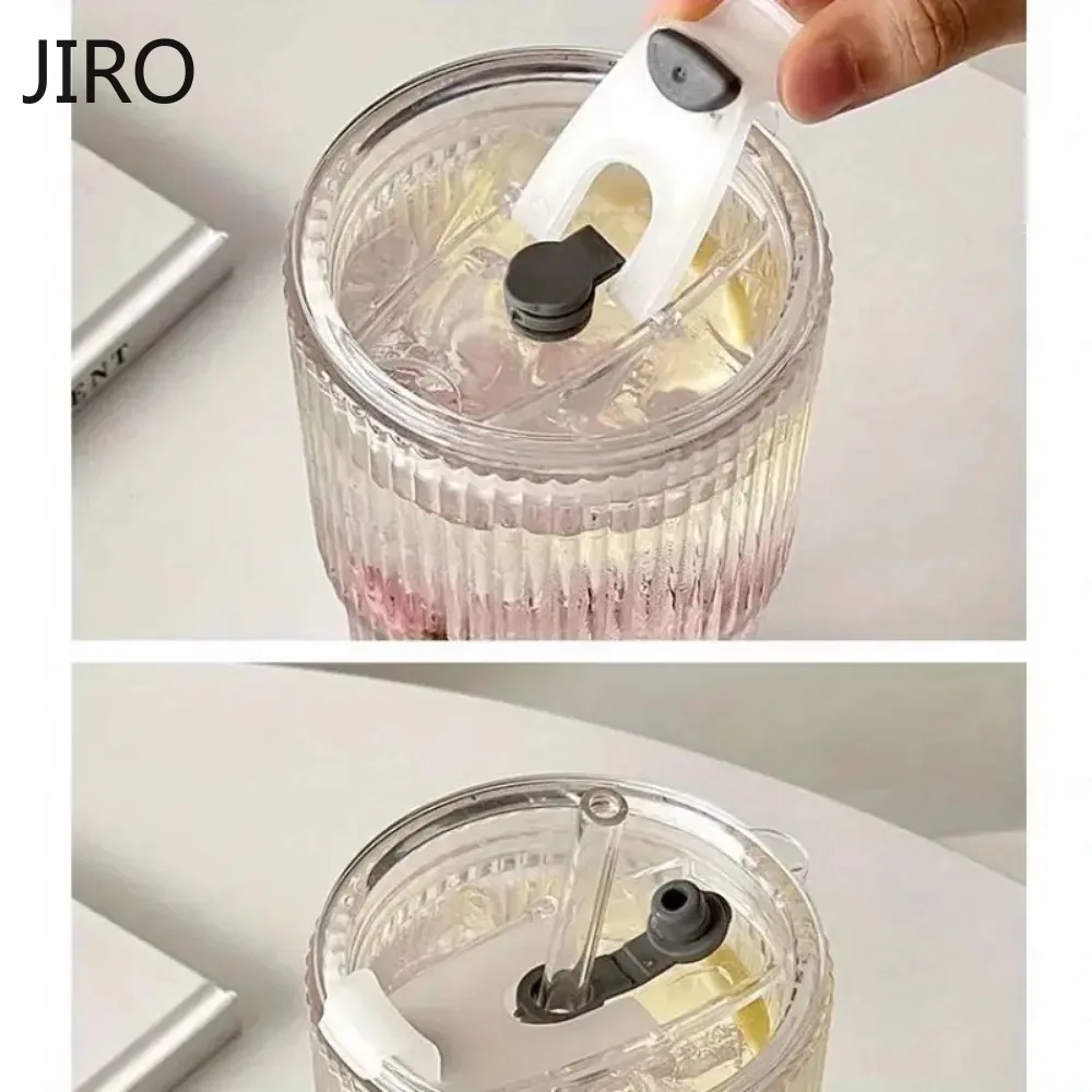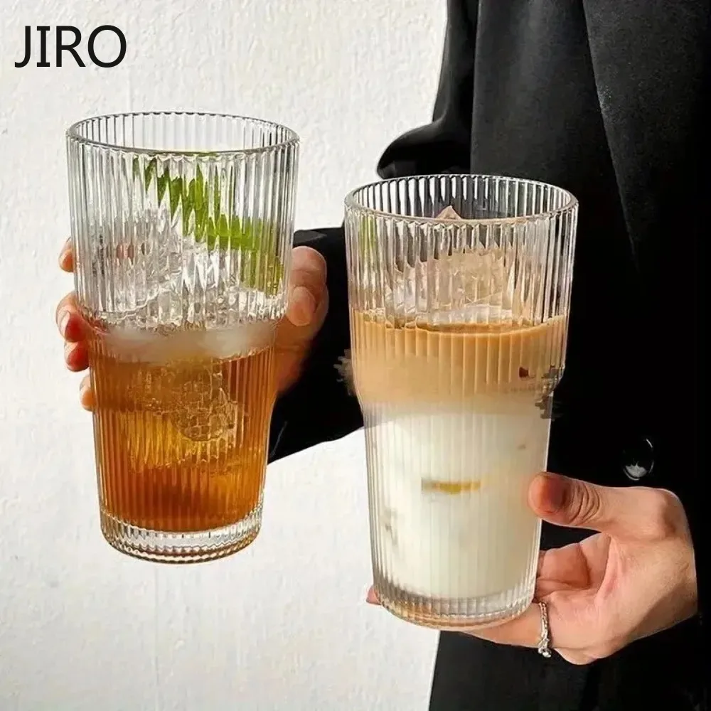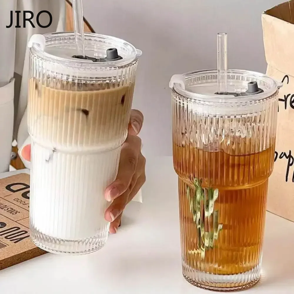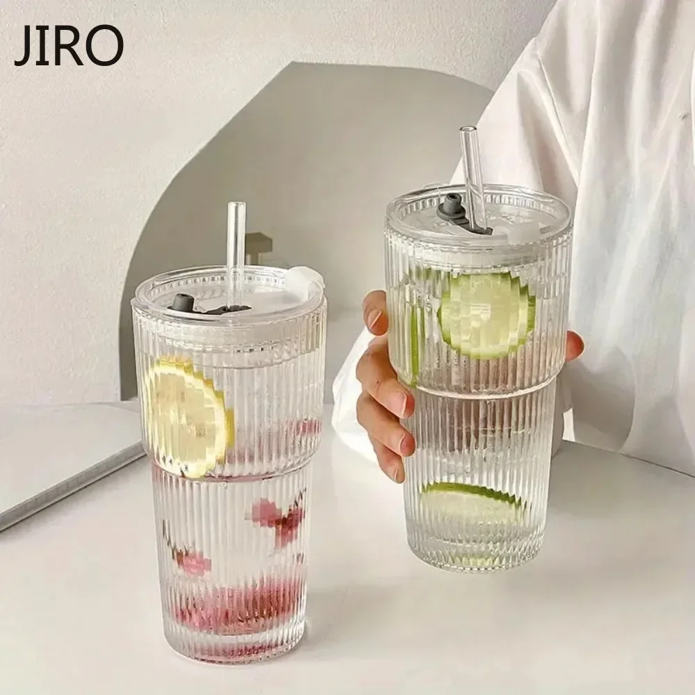 Szklanka do kawy w paski 600 ml z pokrywką i bez, przezroczyste szklanki do picia z słomką do soków, mrożonej kawy, kubki