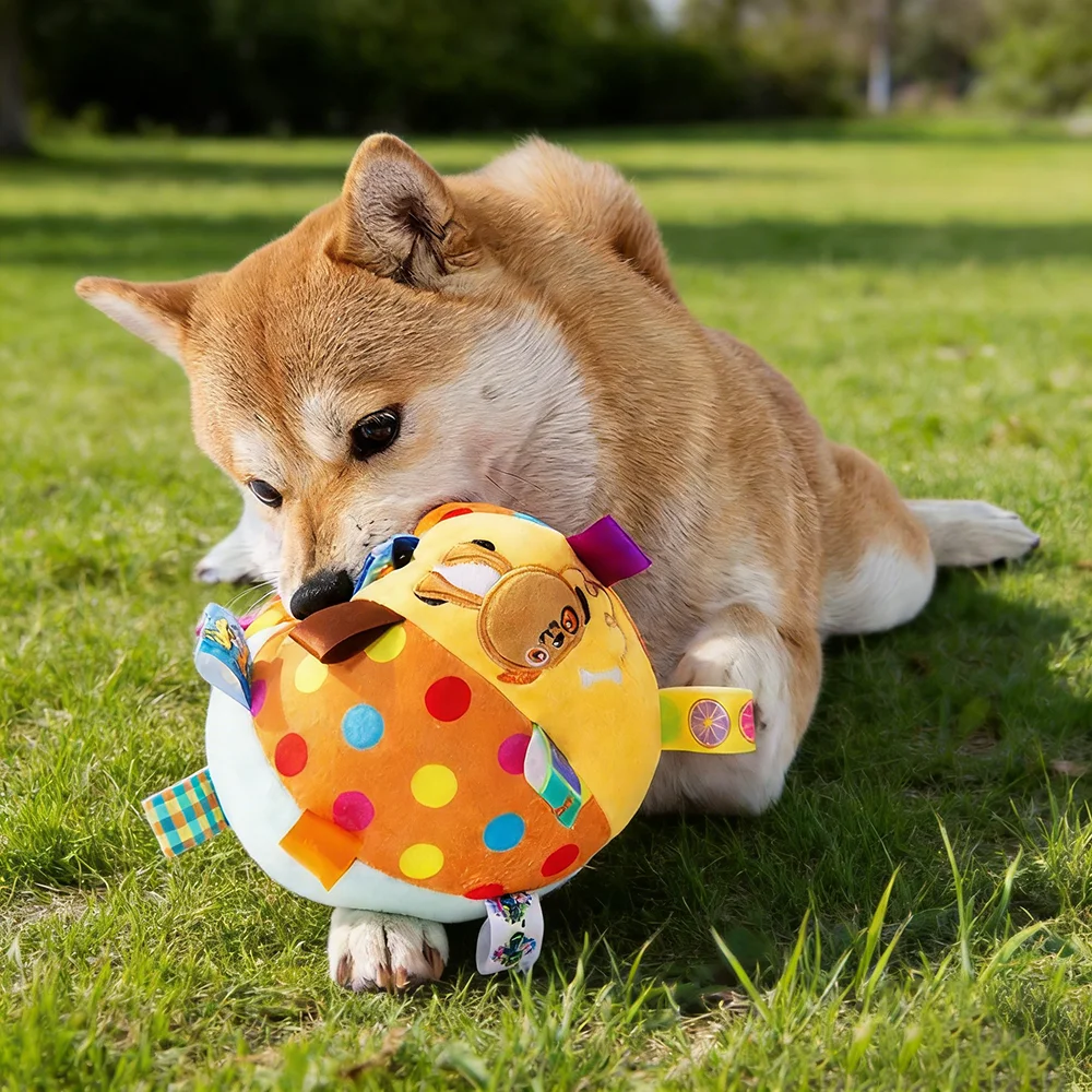 Interaktywna piłka dla psa, zabawka dla agresywnych gryzaków, treningowa, odprężająca, odporna na gryzienie, pluszowa zabawka z uchwytem i dzwoneczkami, artykuły dla zwierząt.