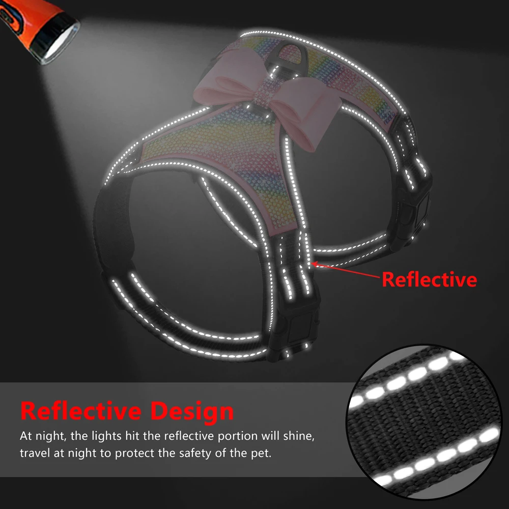 Moda odblaskowa Bling Rhinestone szelki dla psa Nylon Pitbull mops małe średnie psy szelki kamizelka z Bowknot akcesoria dla psów