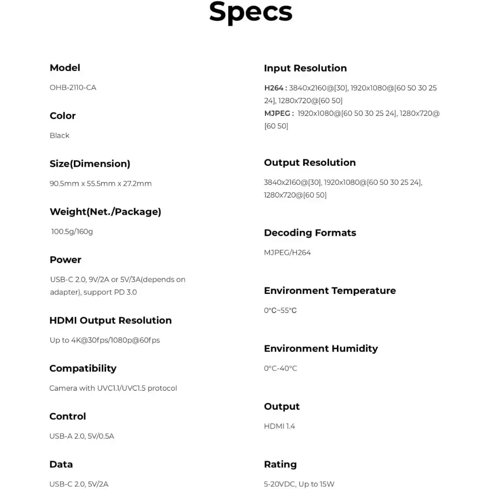Adapter OBSBOT UVC na HDMI 2.0 dla Tiny 2, małych kamery internetowe 4K/1080P Meet 4K/1080P UVC