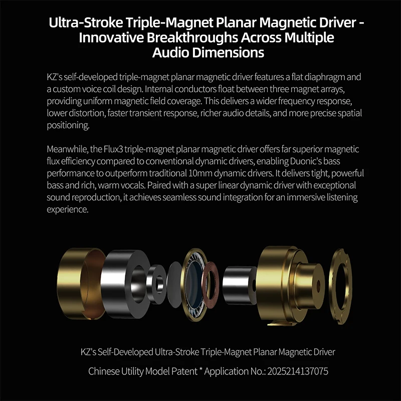 KZ Duonic HIFI IEMs Słuchawki Przewodowe z Potrójnym Magnetycznym Planarnym Przetwornikiem, 4 Tune-ami, z Podwójnym Mikrofonem HD dla castor pro