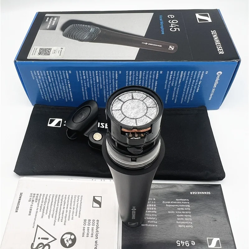 Mikrofon dynamiczny Sennheiser E945 Heart do występów scenicznych, śpiewu, profesjonalny mikrofon przewodowy do studia.