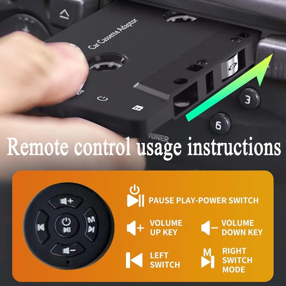 【Wygodne sterowanie muzyką i połączeniami】 Z łatwością przejmij kontrolę nad muzyką i połączeniami telefonicznymi.Ta kaseta Bluetooth umożliwia zmianę głośności, odtwarzanie/wstrzymywanie/przeskakiwanie muzyki oraz odbieranie połączeń bezpośrednio z odbiornika.Zamierzaj skupić się na drodze lub na swoich zajęciach bez konieczności ciągłego sięgania po telefon lub inne urządzenia.Ciesz się bezproblemową kontrolą i wygodą, gdziekolwiek jesteś