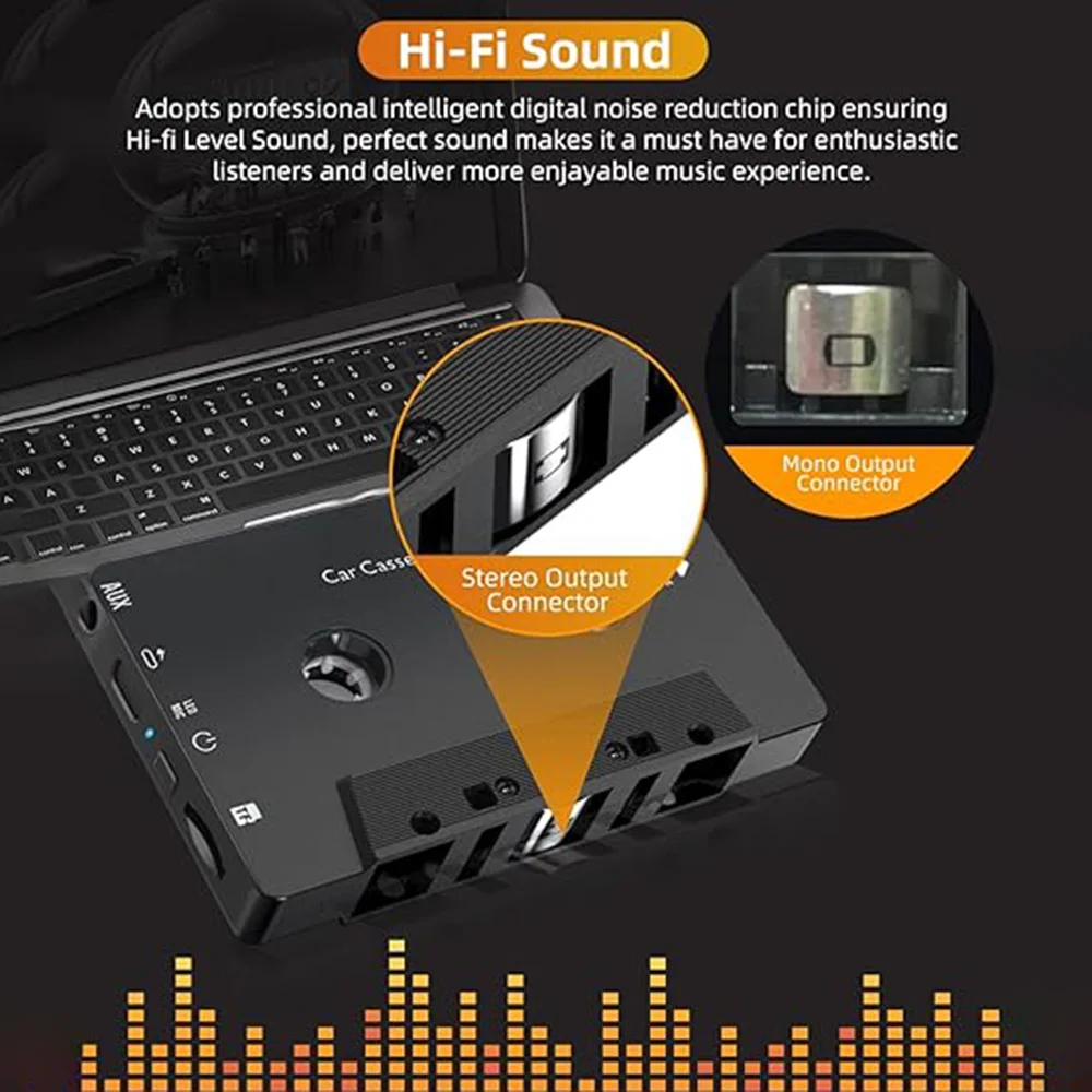 【Najwyższa jakość dźwięku】 Zanurz się w jakości dźwięku stereo dzięki regulowanym ustawieniom korekcji dźwięku.Ciesz się ulubioną muzyką klasyczną dzięki krystalicznie czystej reprodukcji dźwięku dzięki naszemu adapterowi kasetowemu Bluetooth