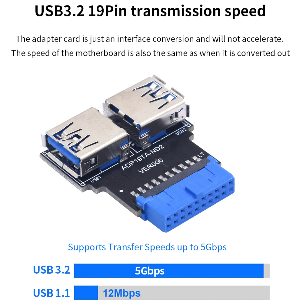TISHRIC 19Pin do konwertera USB3.0 typu C wewnętrzny nagłówek na USB 3.1/3.2 typ C Adapter do płyty głównej komputera stancjonarnego złącze Riser