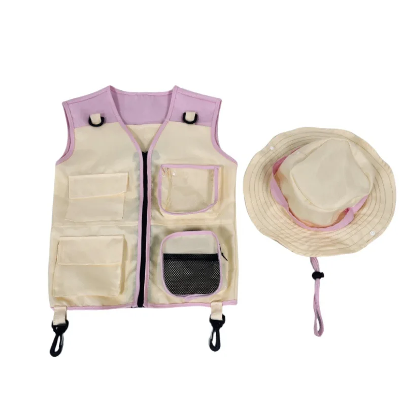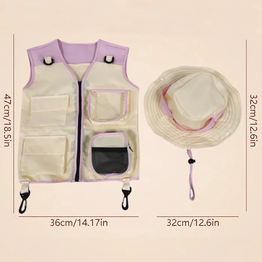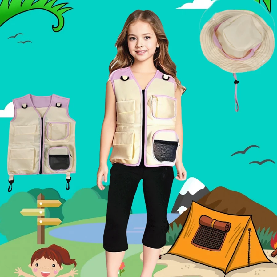 Children Explorer Vest Hat Suit Outdoor Adventure Clothes Multiple Pockets Kids Camping Insect Fishing Party Cosplay Costumes