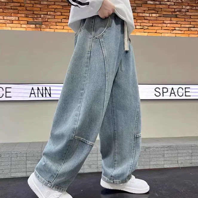 Dżinsy chłopięce Wiosna 2026 Modne spodnie dla chłopców 3-12 lat Dziecięce spodnie dżinsowe chłopięce Casualowe spodnie dżinsowe dla dzieci Małe chłopcy Nastolatki Spodnie z szerokimi nogawkami