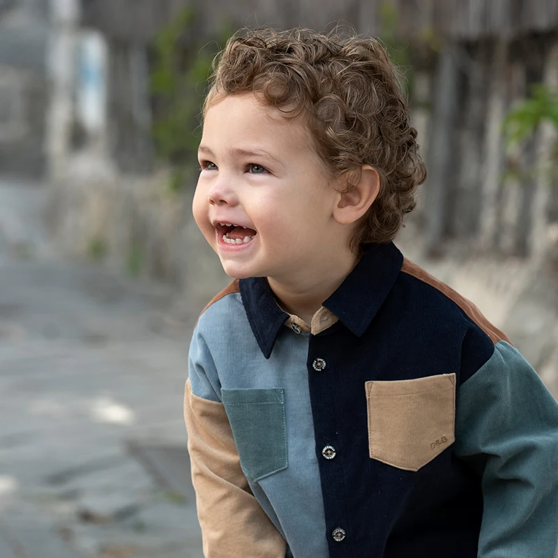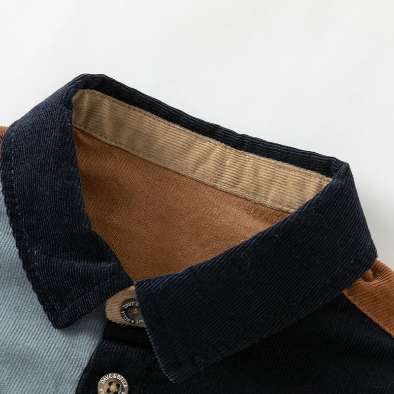 Dave Bella Boy Wiosenna jesienna koszula Casualowa bawełniana bluzka dla dzieci z długim rękawem zapinana na guziki z kieszenią DB 3241650