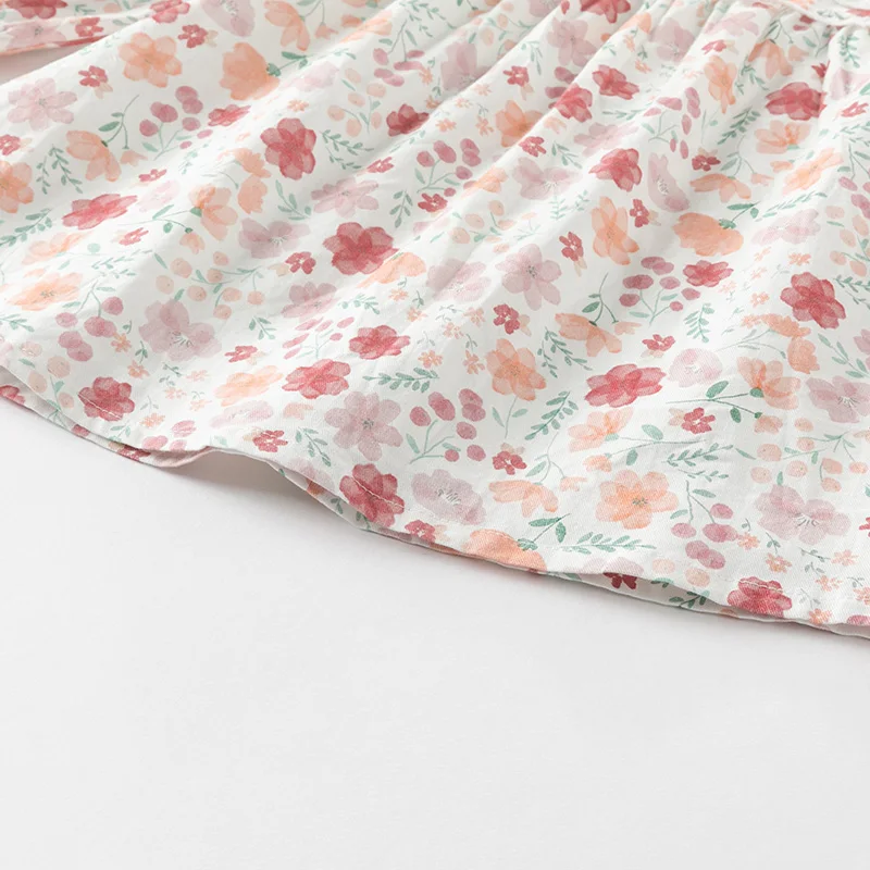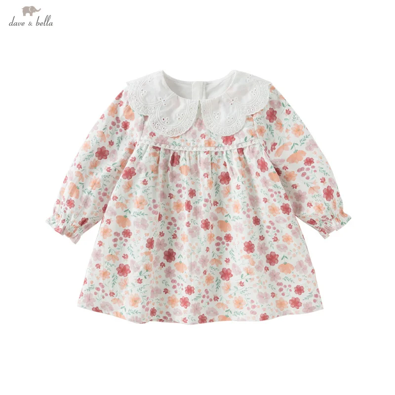Dave Bella Girls Baby Princess Dress 2024 Spring New Casual Sweet Cute Print Long Sleeve Floral Party Outdoor Elegant DB 1252376
