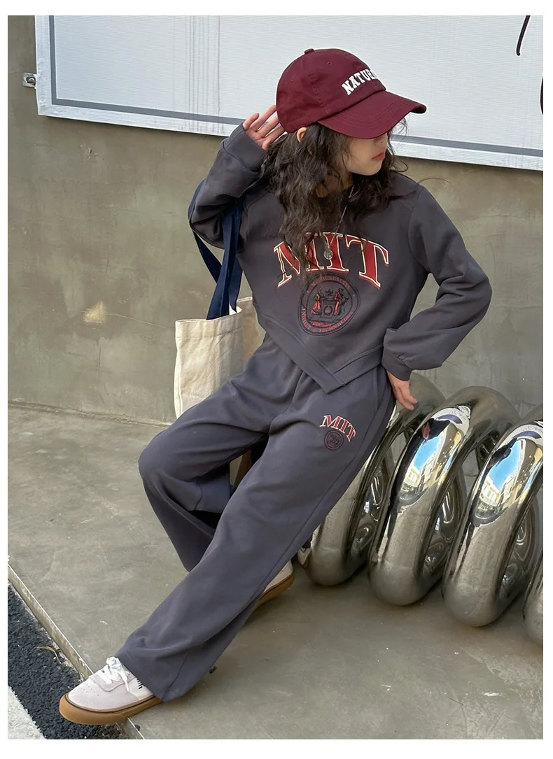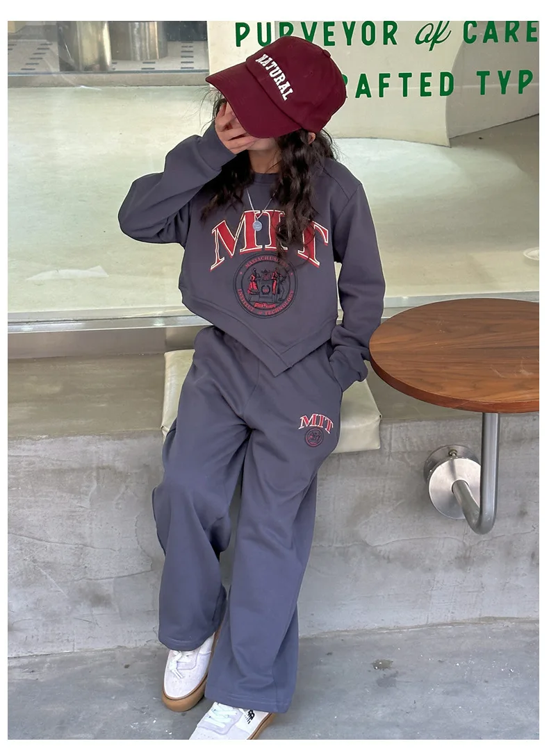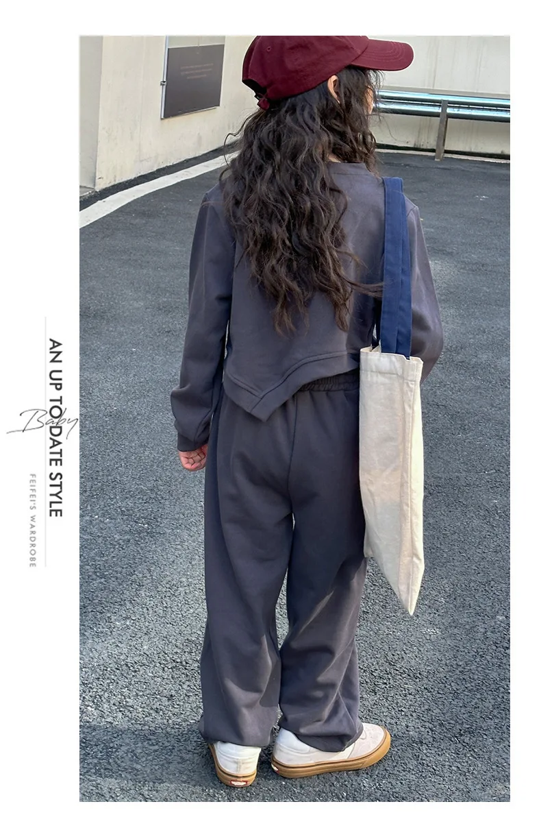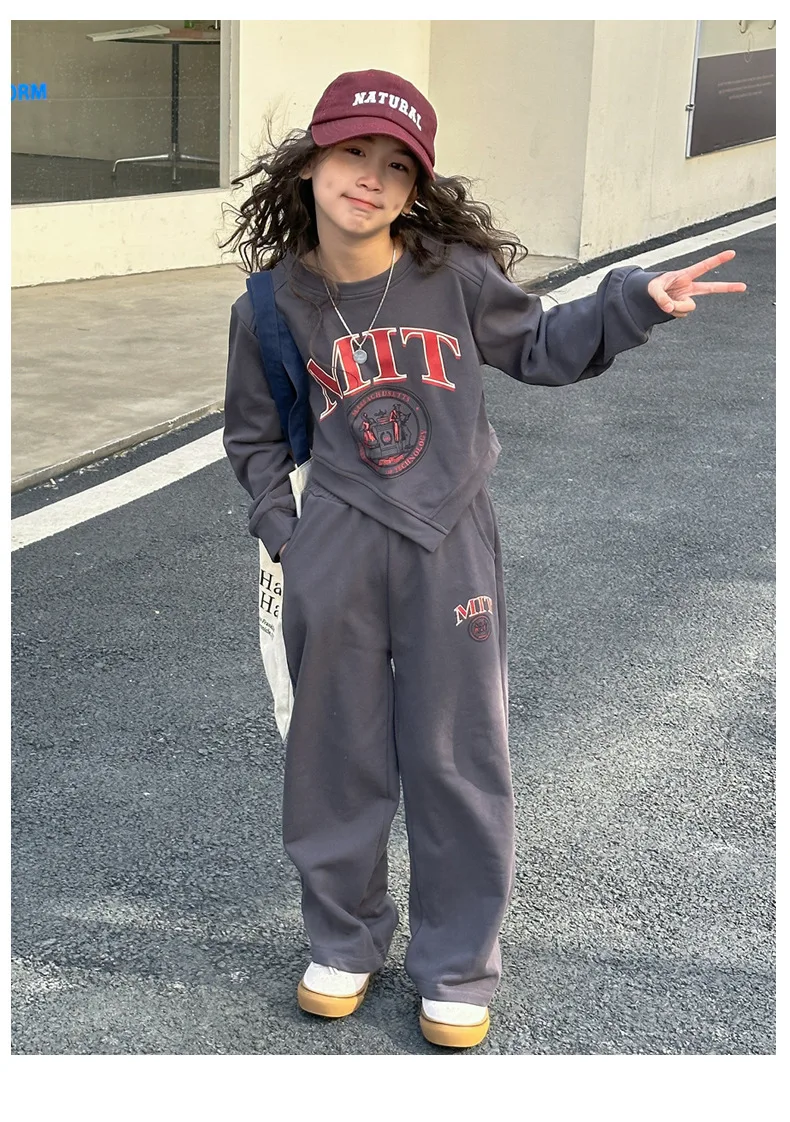 Dwuczęściowy zestaw dziewczęcego swetra na co dzień Wiosna Nowe średnie i duże dzieci Sportowe luźne nogawki Długi kombinezon sportowy i rekreacyjny