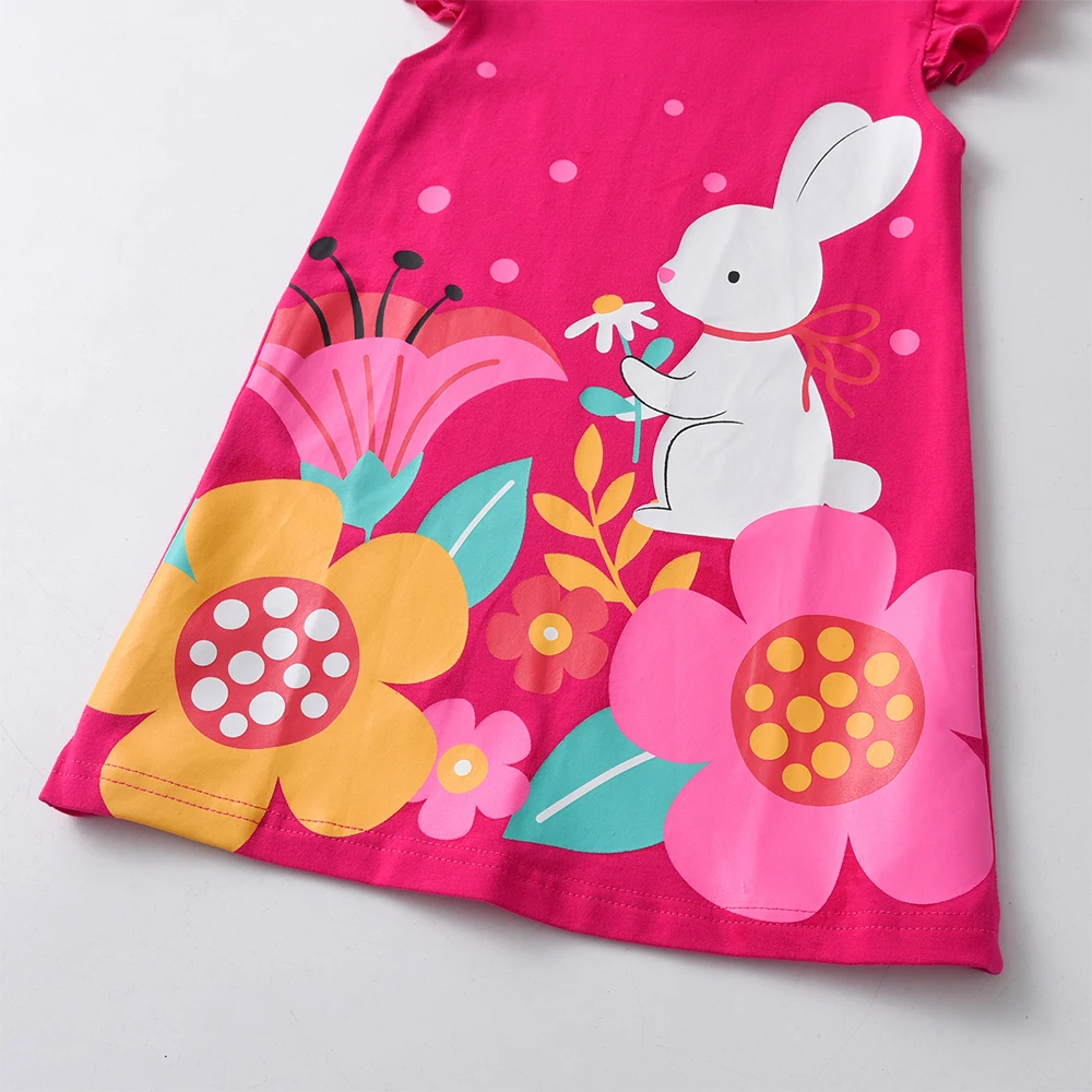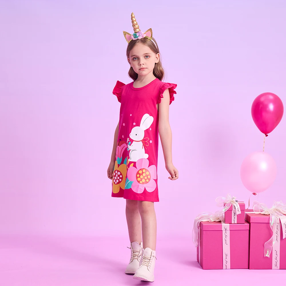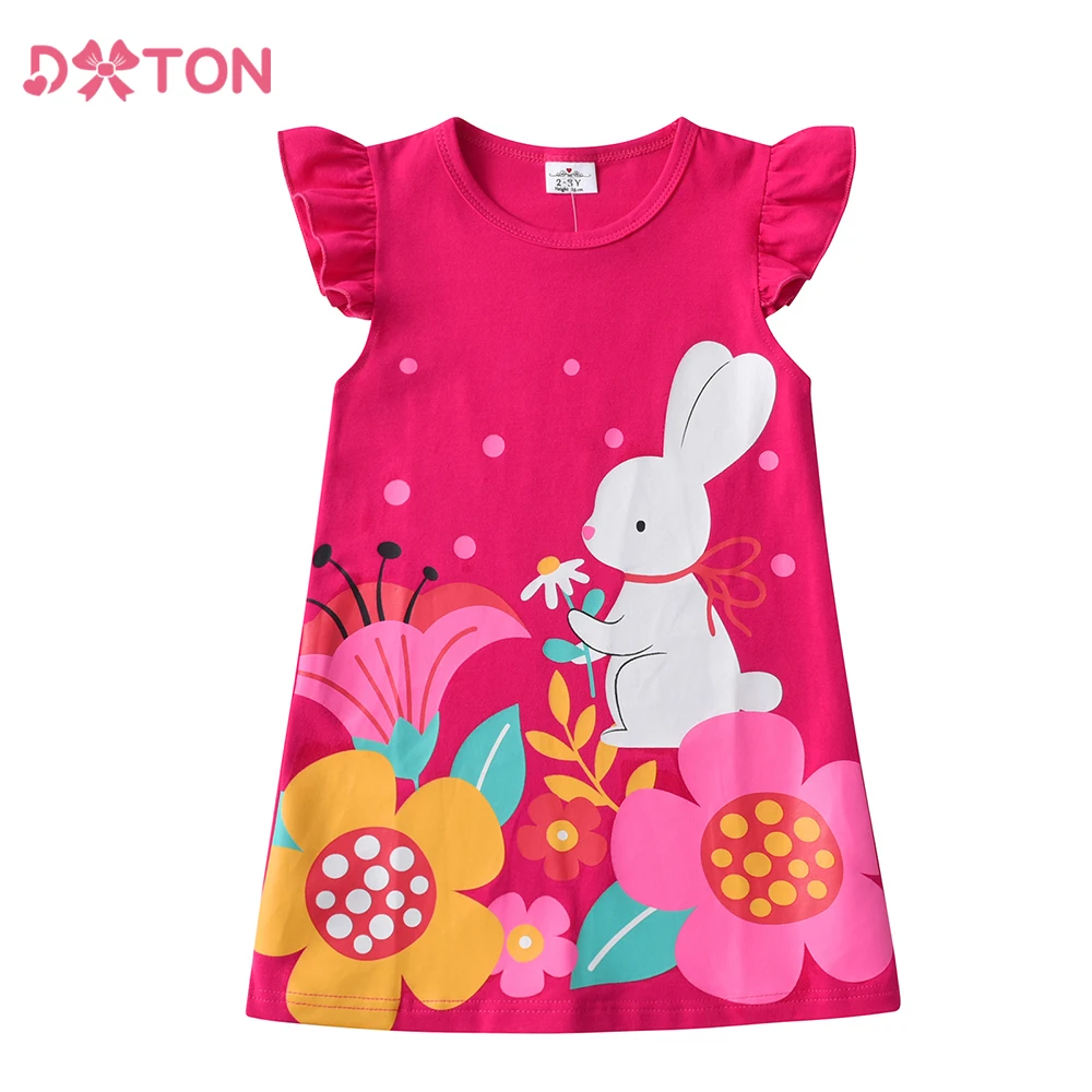 DXTON letnie sukienki dla dziewczynek bez rękawów królik śliczna sukienka księżniczki dla dziewczynek bawełniana sukienka z kwiatowym nadrukiem odzież dla maluchów 3-12 lat
