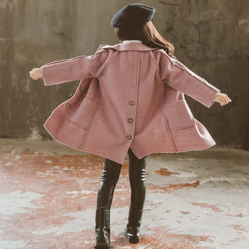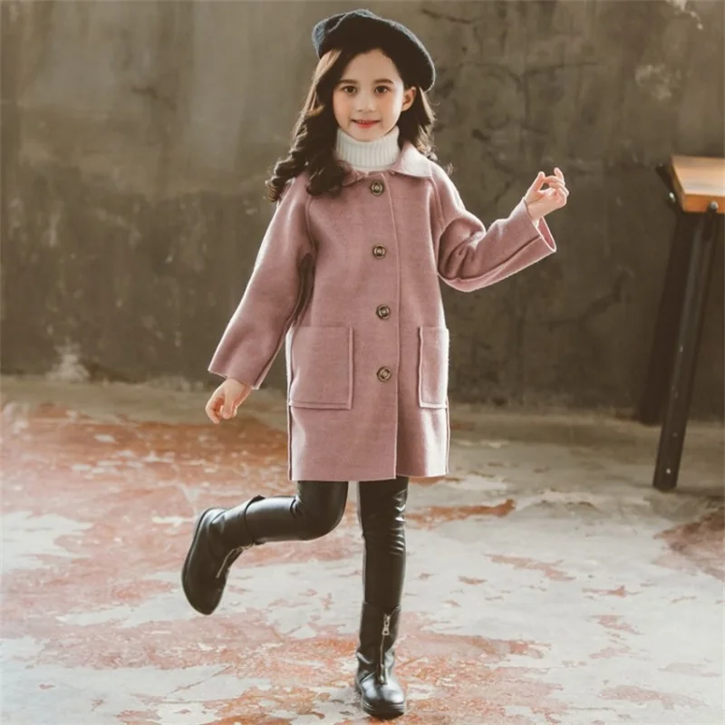 Dziecięce zimowe płaszcze mieszanka wełny w stylu Vintage nastoletnie dziewczyny beżowe długie kurtki ciepła odzież wierzchnia gruba kurtka dziecko 7 8 10 12 lat