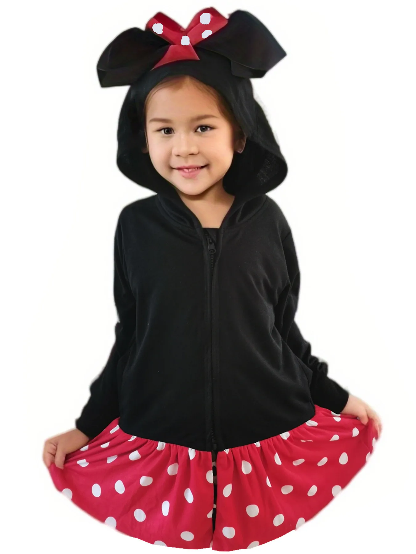 Dziewczęca bluza z kapturem inspirowana księżniczką jabłkową z kieszeniami Strój Królewny Śnieżki Czerwone kropki Śliczna odzież dziecięca