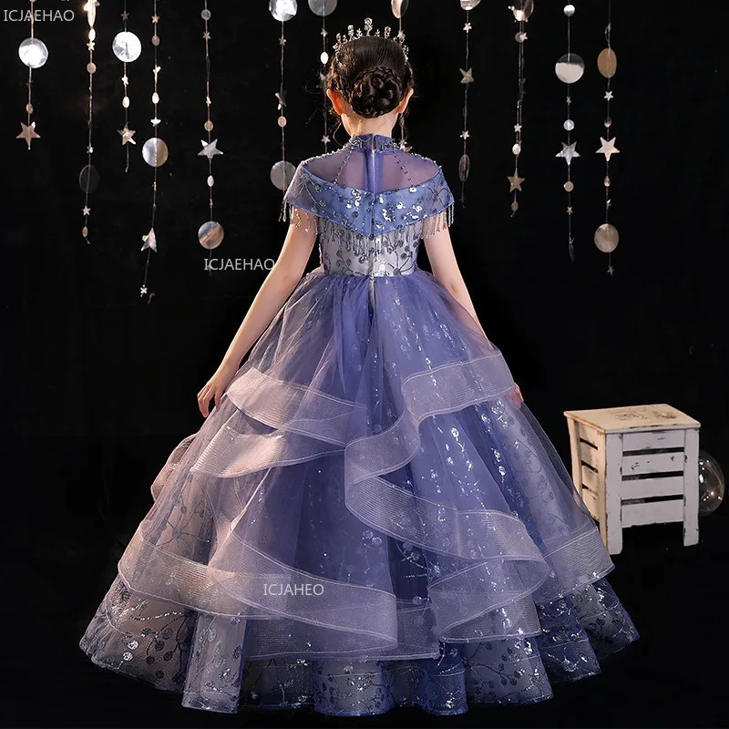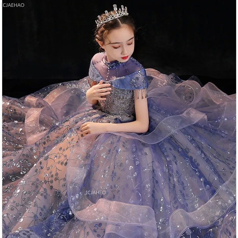 Dziewczęca sukienka księżniczki z tiulu, idealna na przyjęcie, z kwiatami, na występ fortepianowy, wieczorne przyjęcie, dla prowadzącej, sukienka na wesele, konkurs piękności, sukienka urodzinowa dla dzieci.