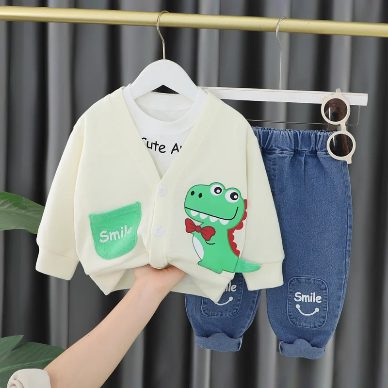 Nowe wiosenno-jesienne ubranka dla niemowląt dziewczynek i chłopców, kurtka z kreskówkami, koszulka, spodnie, 3 sztuki/zestawy, odzież dziecięca, strój codzienny dla niemowląt.