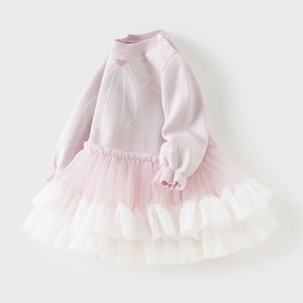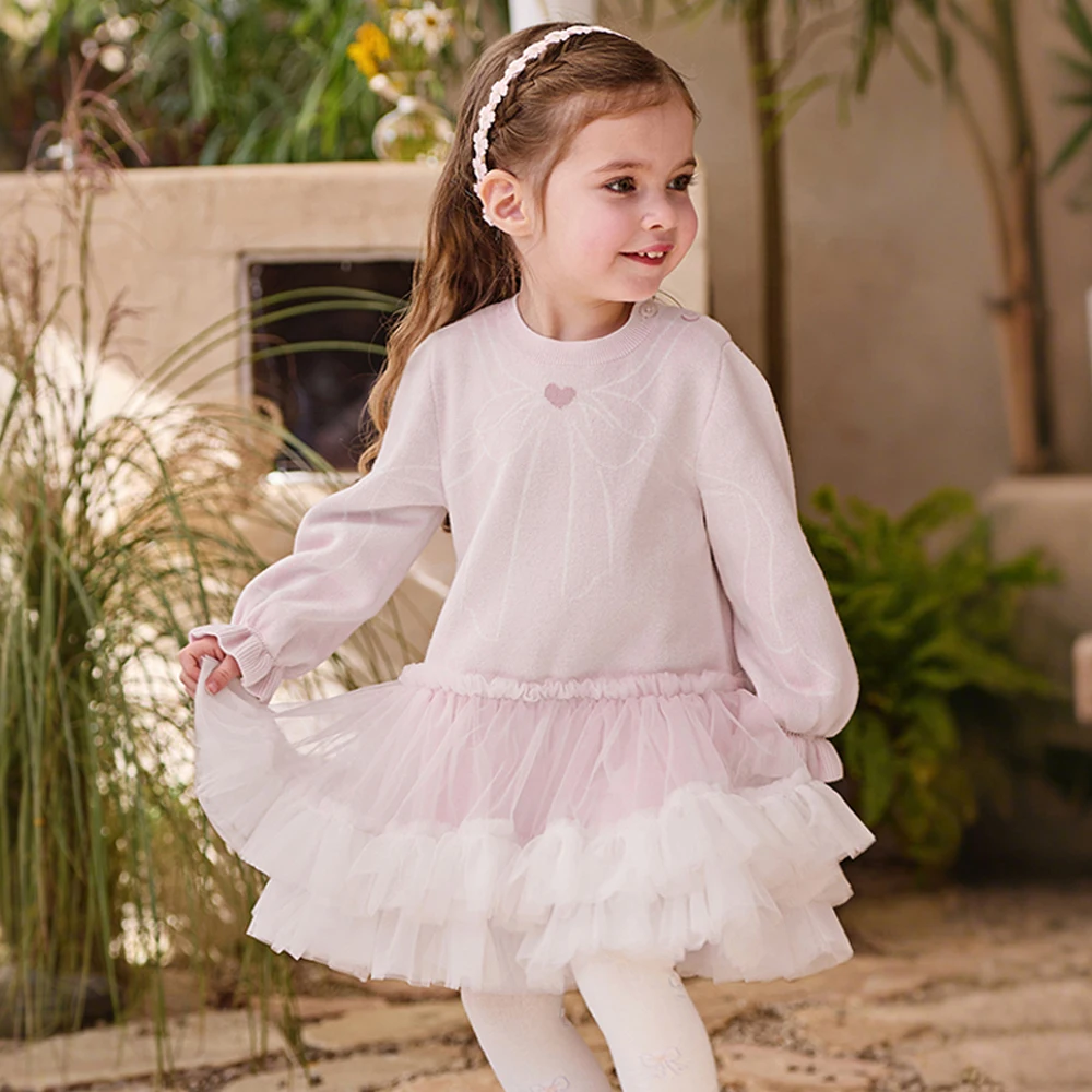 Sukienka Dave Bella Jesień Wiosna Sweter Siateczkowa Sukienka Dziewczęca Długi Rękaw Sukienka na Przyjęcie Sukienka Księżniczki Ubrania Urodzinowe dla Dzieci DB1260665