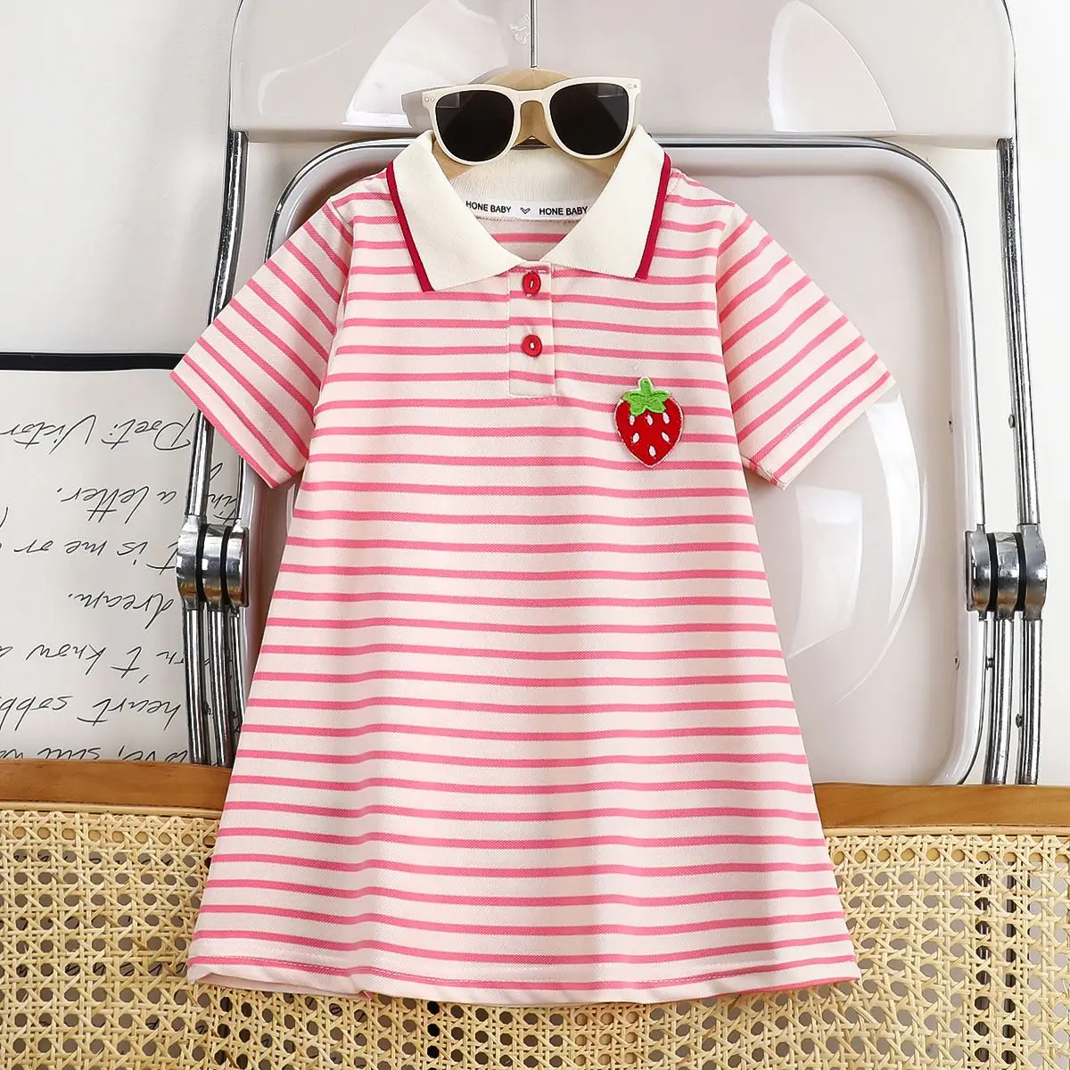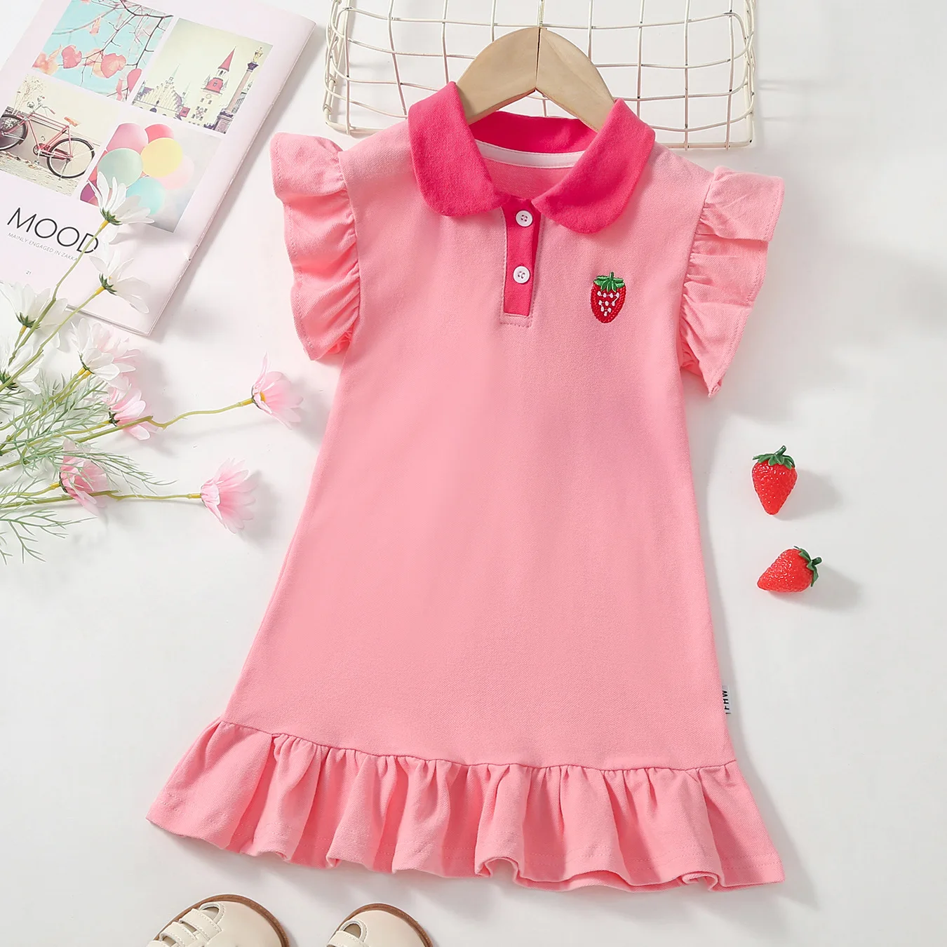 Sukienka koreańska dla dziewczynek na lato 2026, z haftowanym kołnierzykiem, falbankami i wykończeniem, sukienka księżniczki, rozmiar 1-6 lat.