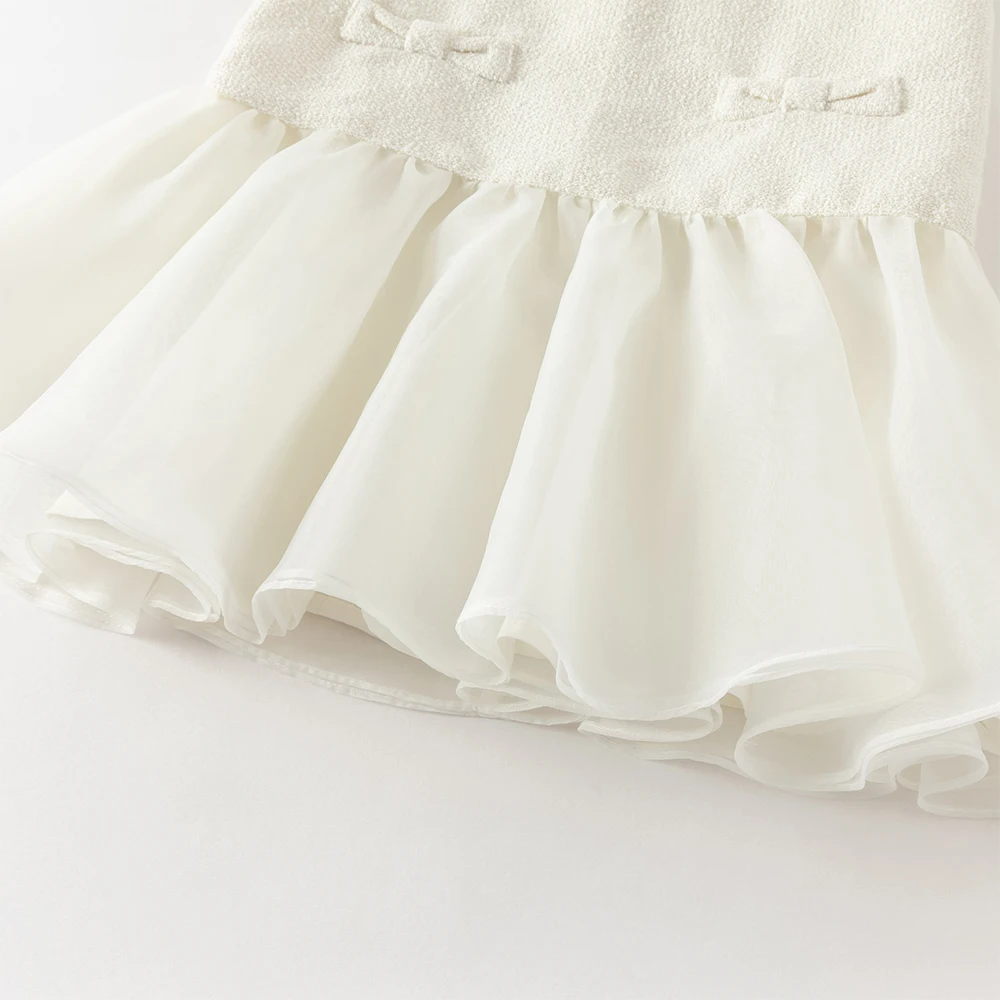 Sukienka księżniczki dla dziewczynek Dave Bella, jesienna/wiosenna, delikatna koronka, siateczka, biała, na zewnątrz, słodka, na przyjęcie, ubrania dla dzieci, DB1260586