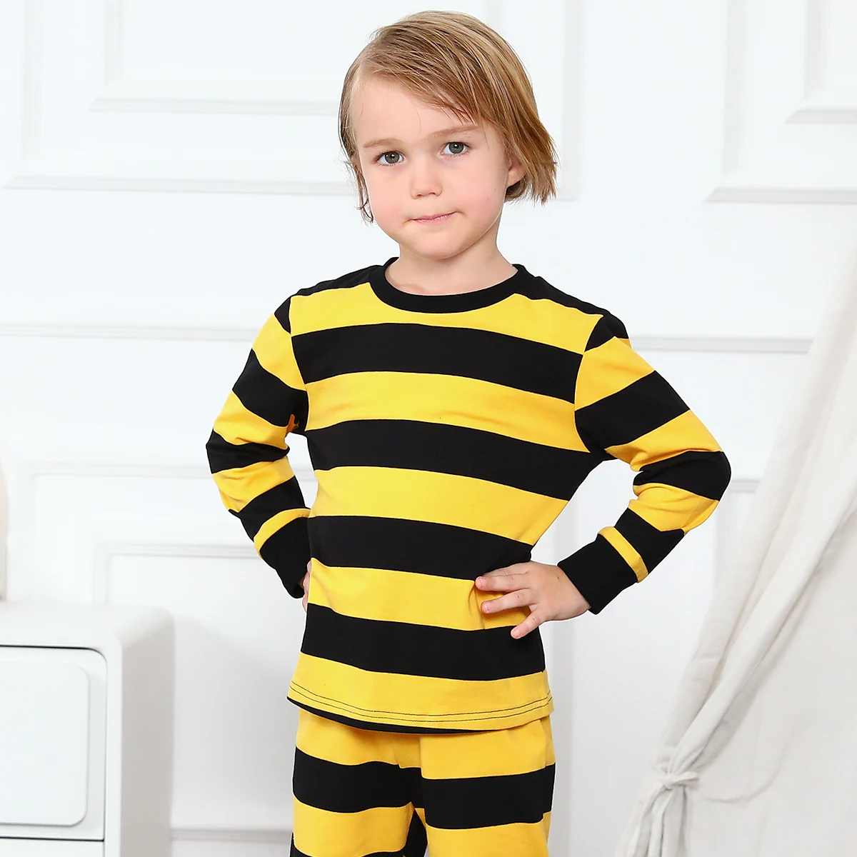 Zestaw piżam w żółto-czarne paski dla małych chłopców dziewcząt Halloween pszczoła Pjs dla dzieci piżamy Infanf Party prezent bielizna nocna