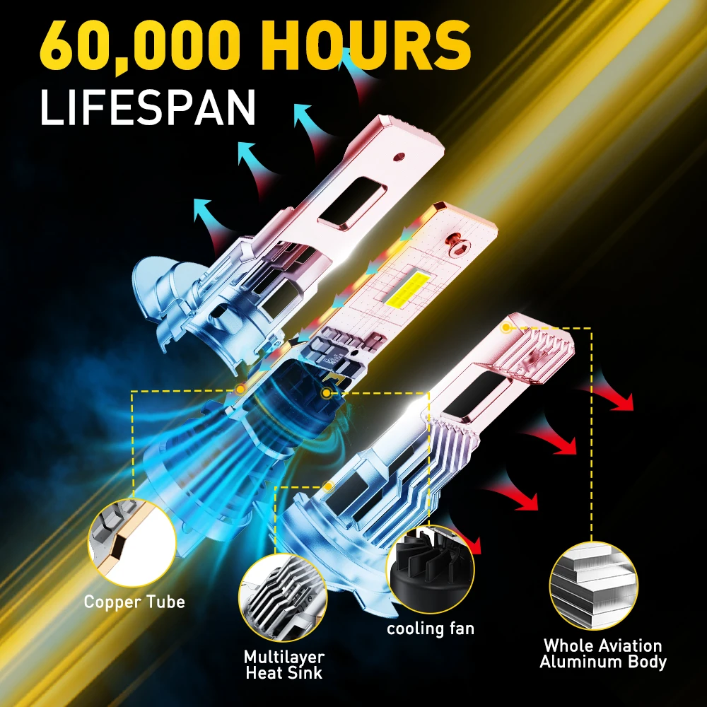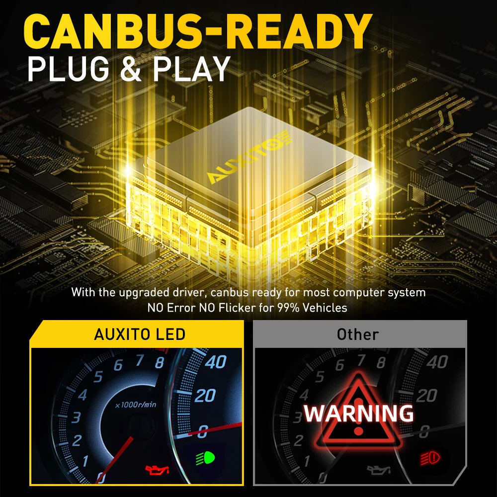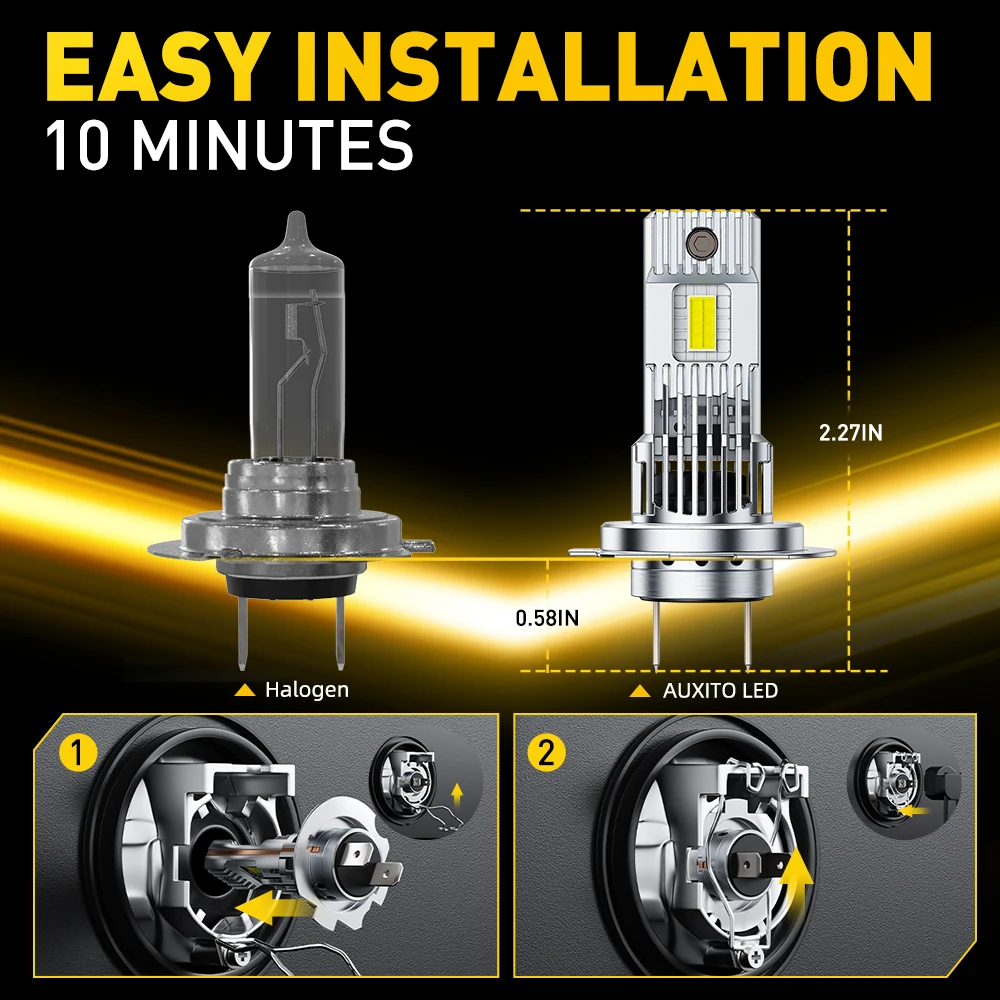 AUXITO 2 szt. Wysokiej jakości żarówki LED H7 CANBUS do samochodu, żarówki reflektorów CSP 70W 6500K białe, lampa samochodowa Plug & Play 12V 30000LM