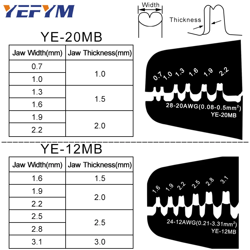 Szczypce do zaciskania złączek Molex Tyco JST typu Spade: SH1.0/ZH1.5/PH2.0/XH2.54/SM2.54/2510/VH3.96/5557/5559, narzędzia do zaciskania YE-12MB/20MB YEFYM