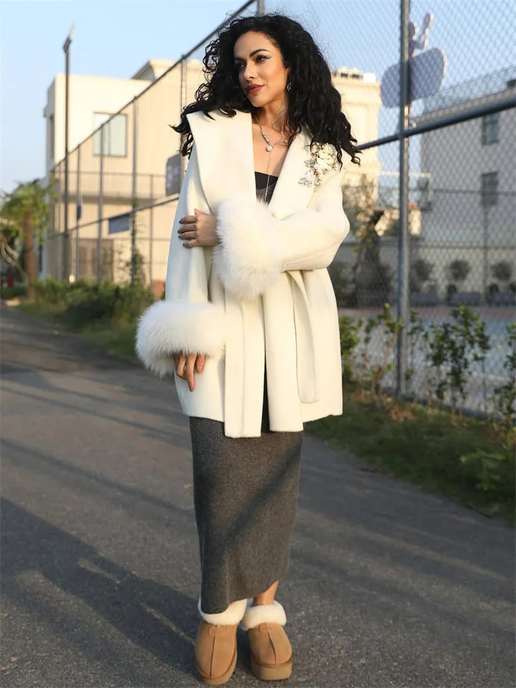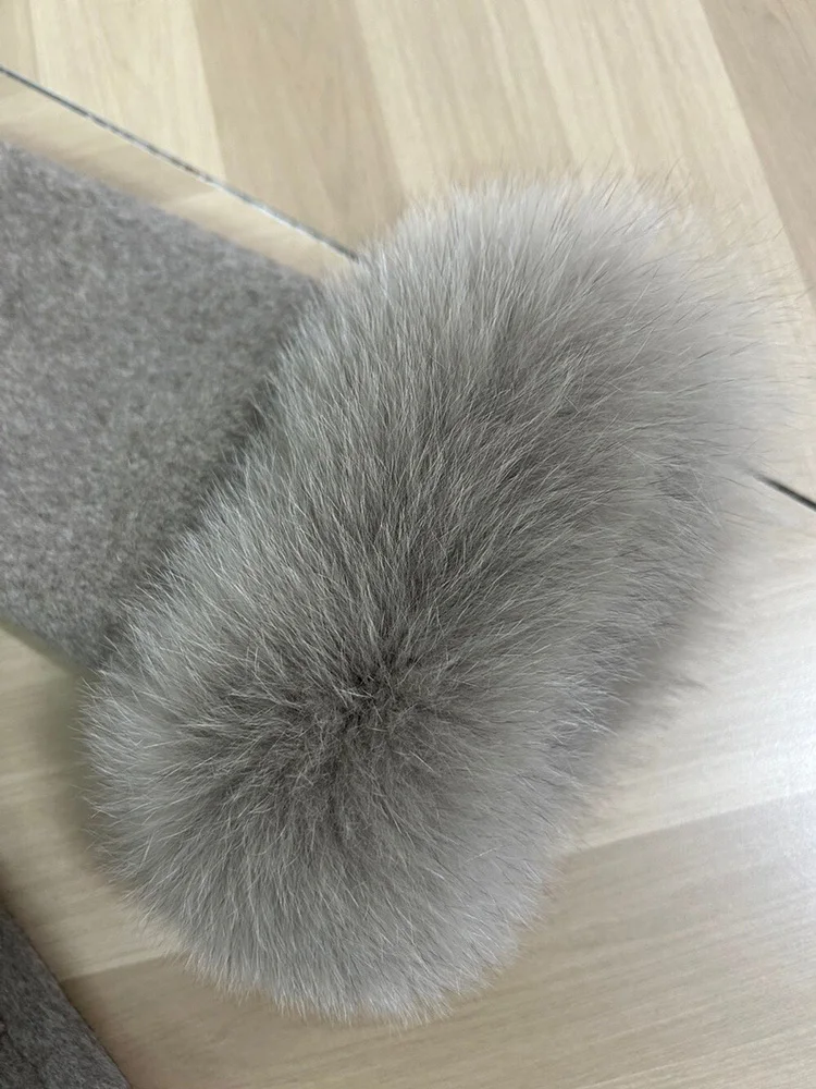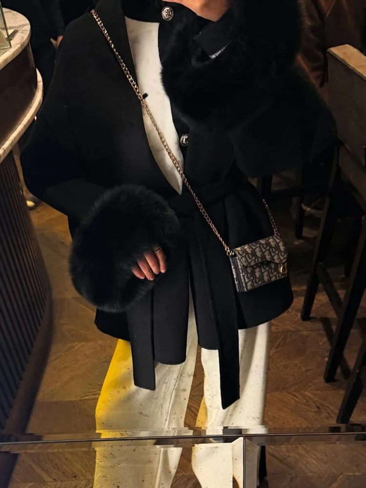 Krótki płaszcz damski z futra lisa i wełny, elegancki płaszcz wełniany dwustronny dla kobiet pracujących, nowy kardigan z wełny luźny krój, kolekcja 2025.
