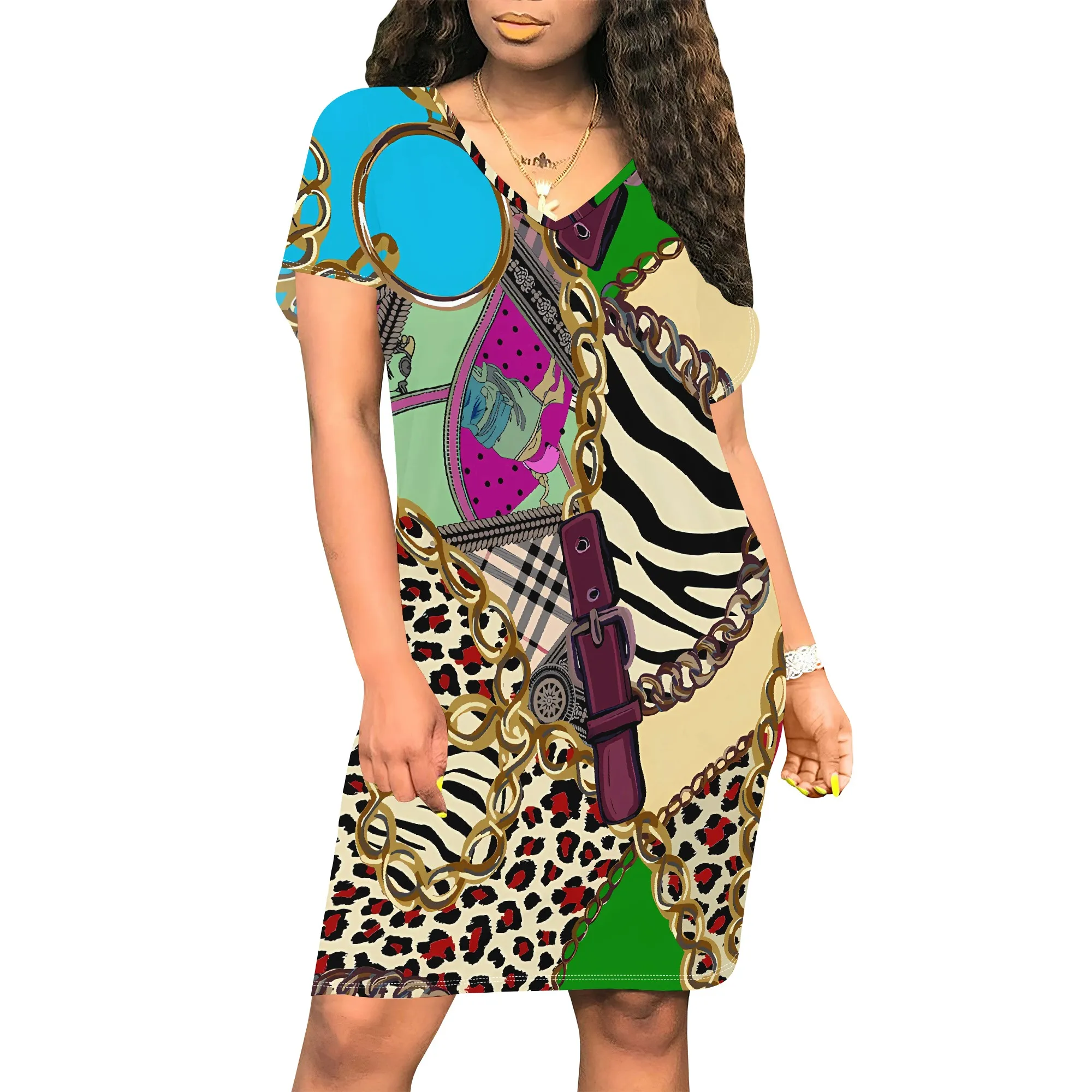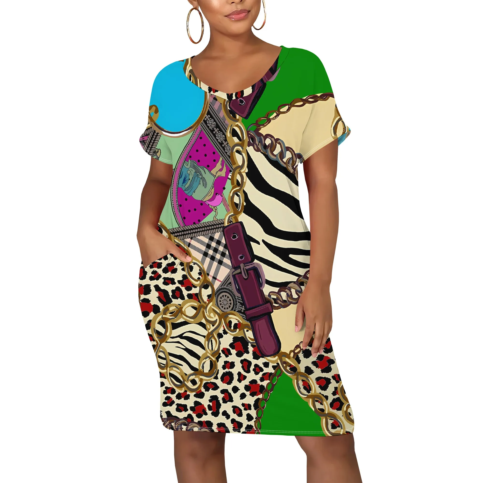 Damska letnia modna sukienka maxi z okrągłym dekoltem dla kobiet z krótkim rękawem, długimi, luźnymi, swobodnymi sukienkami midi z kieszenią