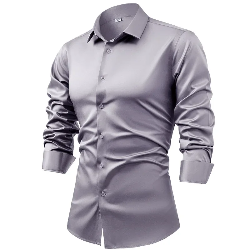 S~6XL satynowa koszula plus size z długim rękawem biznesowa koszula na co dzień nieprasująca, odporna na zmarszczki męska hurtownia, koszule męskie