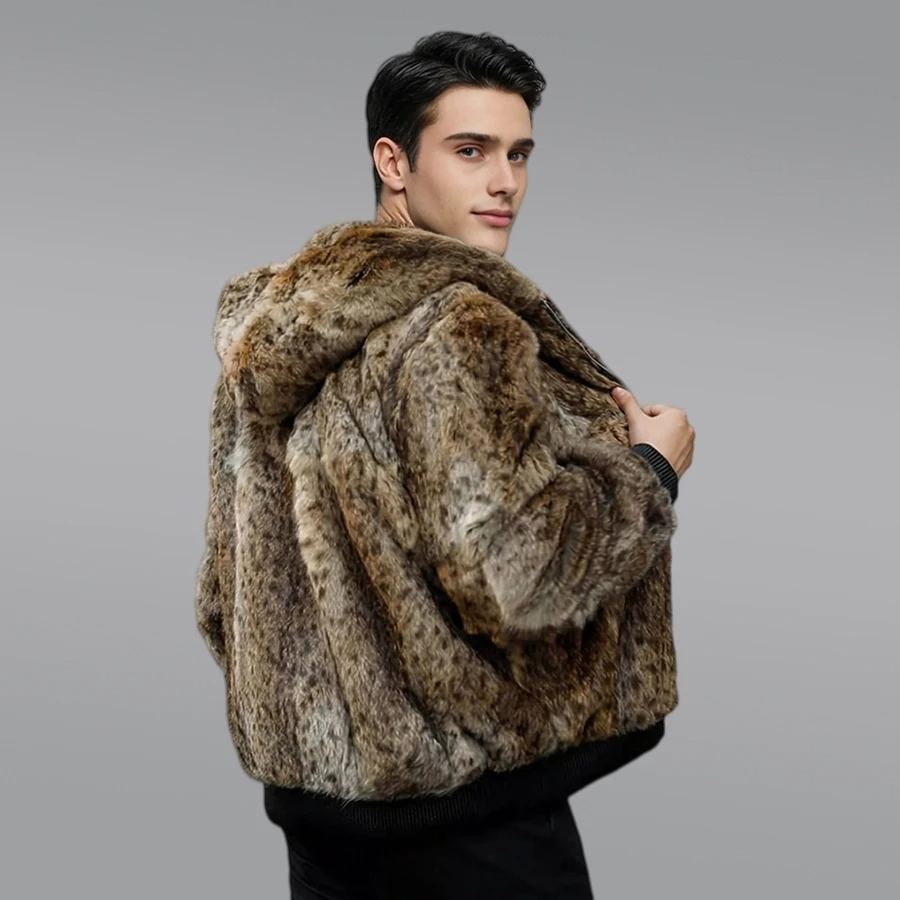 Płaszcze z futra królika Chichilla Rex, męskie płaszcze z futra królika z kołnierzem, futrzana kurtka, popularna kurtka z prawdziwego futra zapinana na zamek.