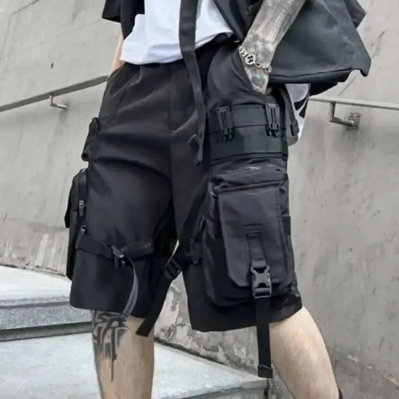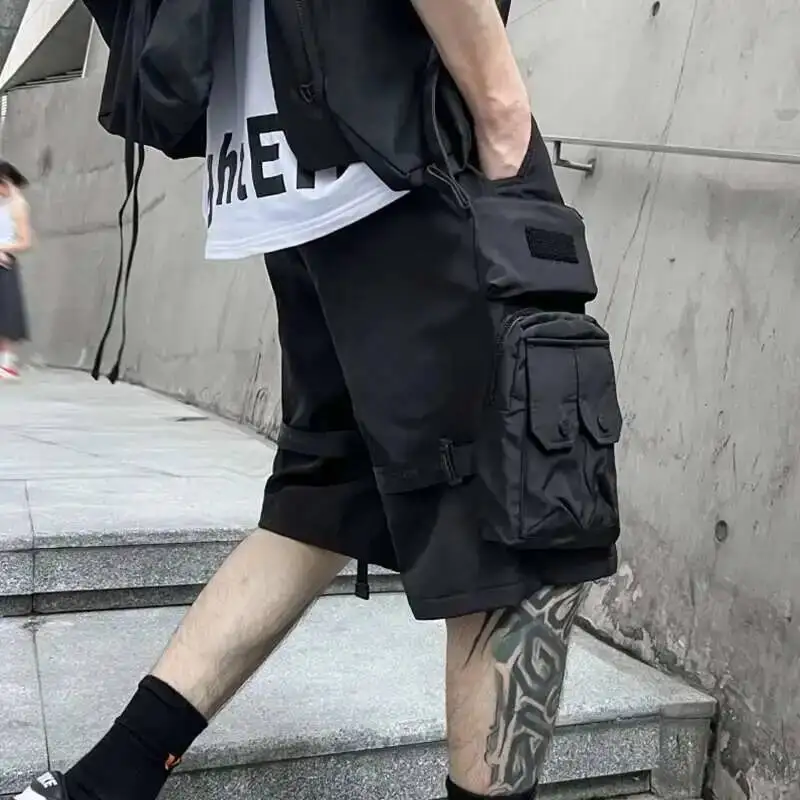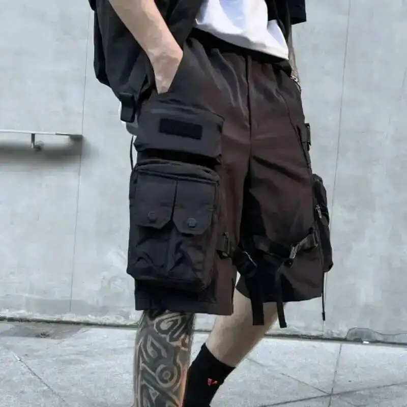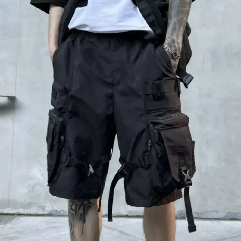 HKSH letnie kilka kieszeni styl safari ciemne spodenki funkcjonalna moda męska główna ulica jednokolorowe proste luźne Capris HK0700