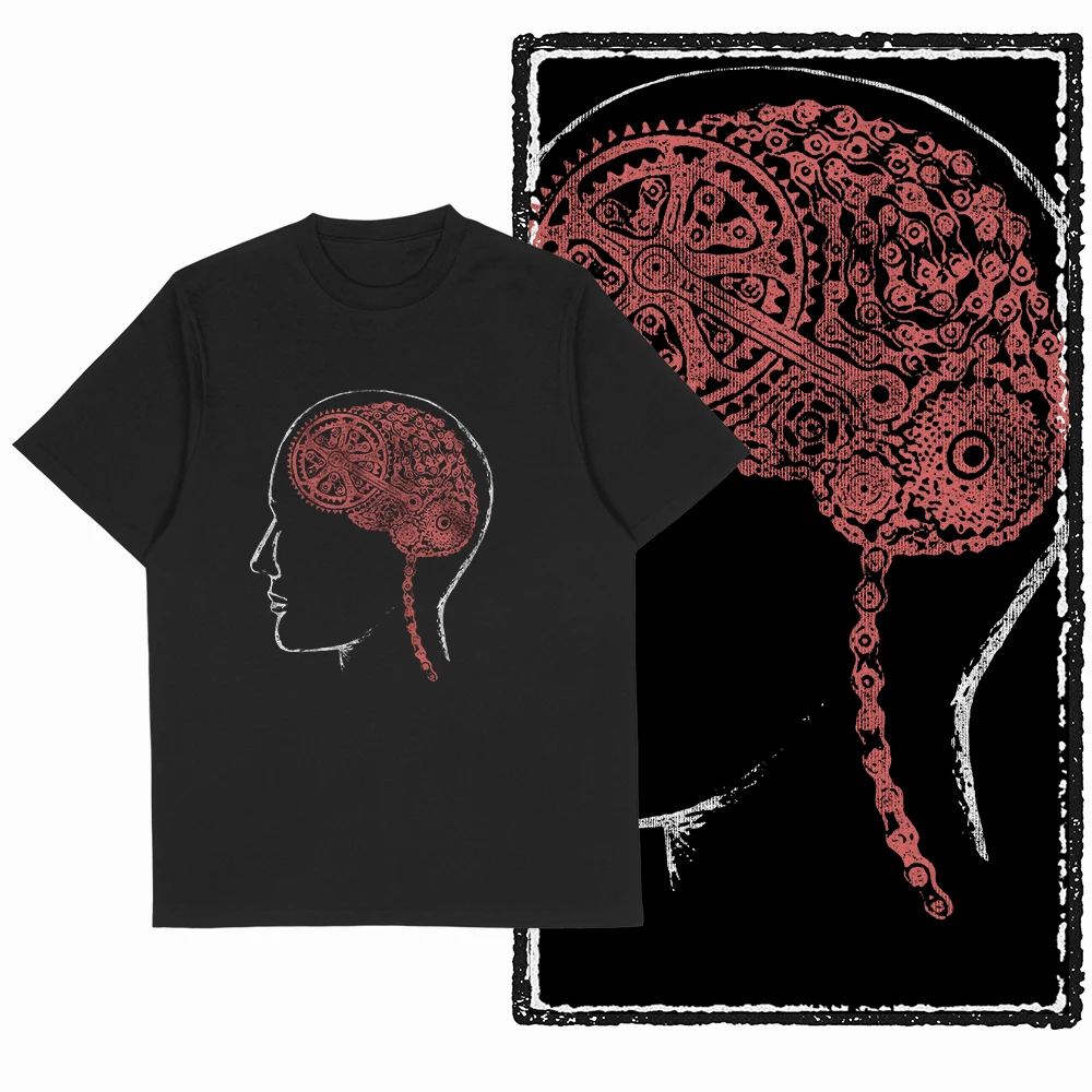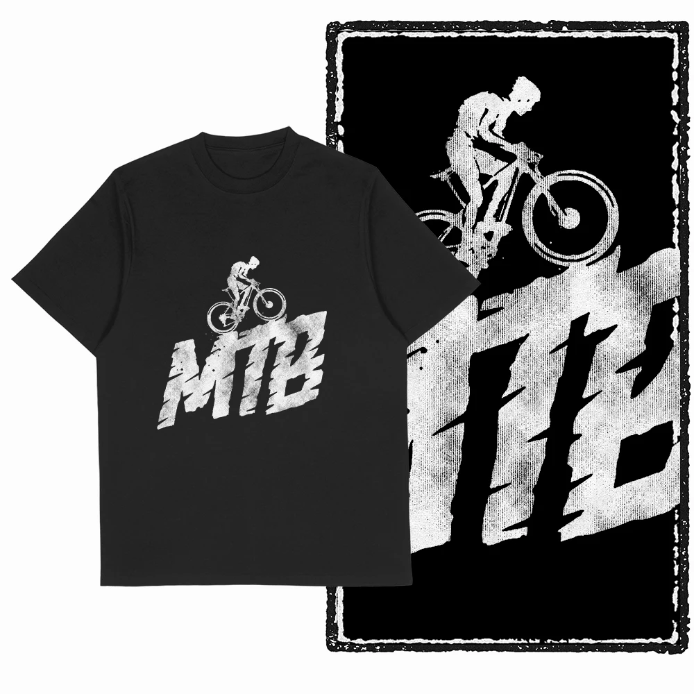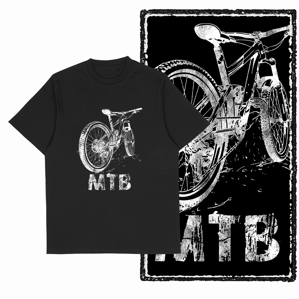 Koszulka męska Coolmind YIA MTB z ekskluzywnym nadrukiem, bawełniana, duży rozmiar, nowatorska, fajna, czarna, męska koszulka z nadrukiem.