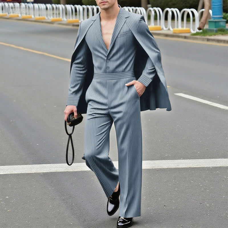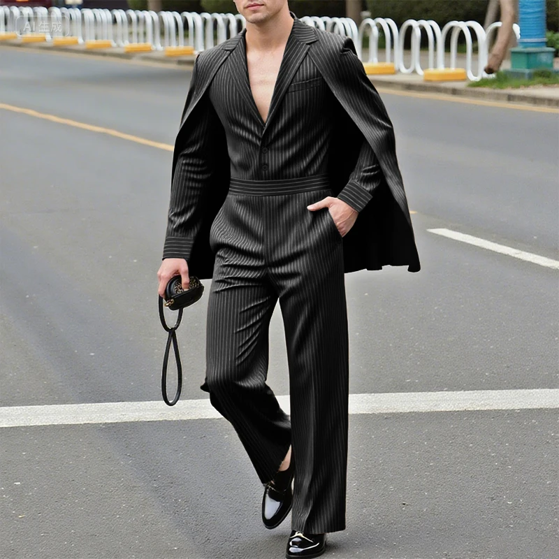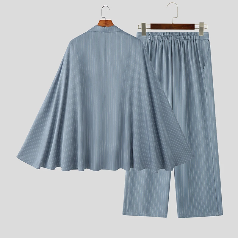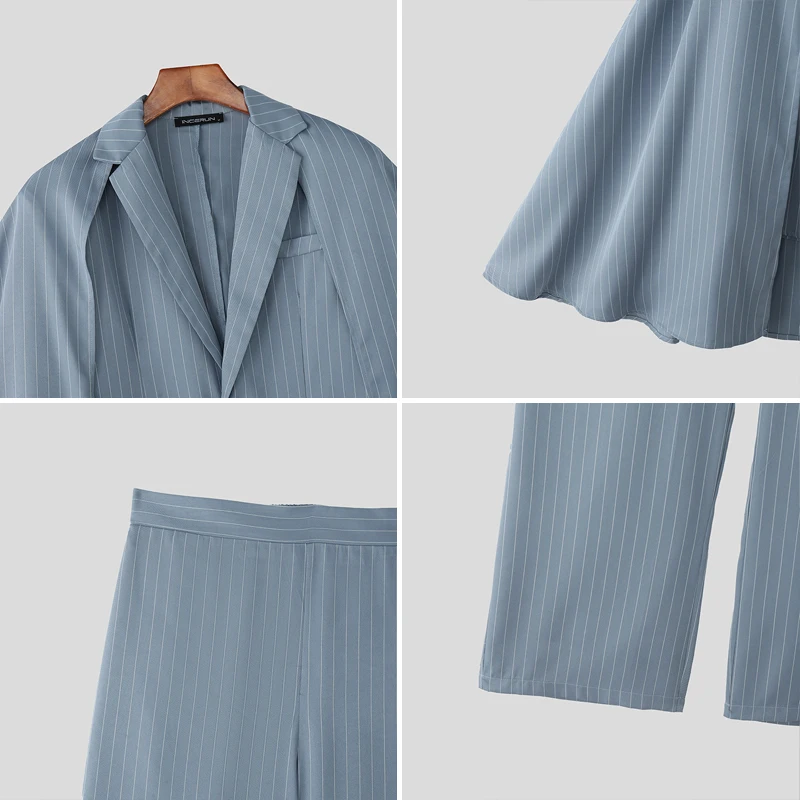 INCERUN Męskie Komplety w Paski Streetwear Elegancki Żakiet z Długim Rękawem i Nieregularne Spodnie Dwuczęściowy Zestaw Moda Casual Męskie Garnitury 2025 Rozmiary S-5XL