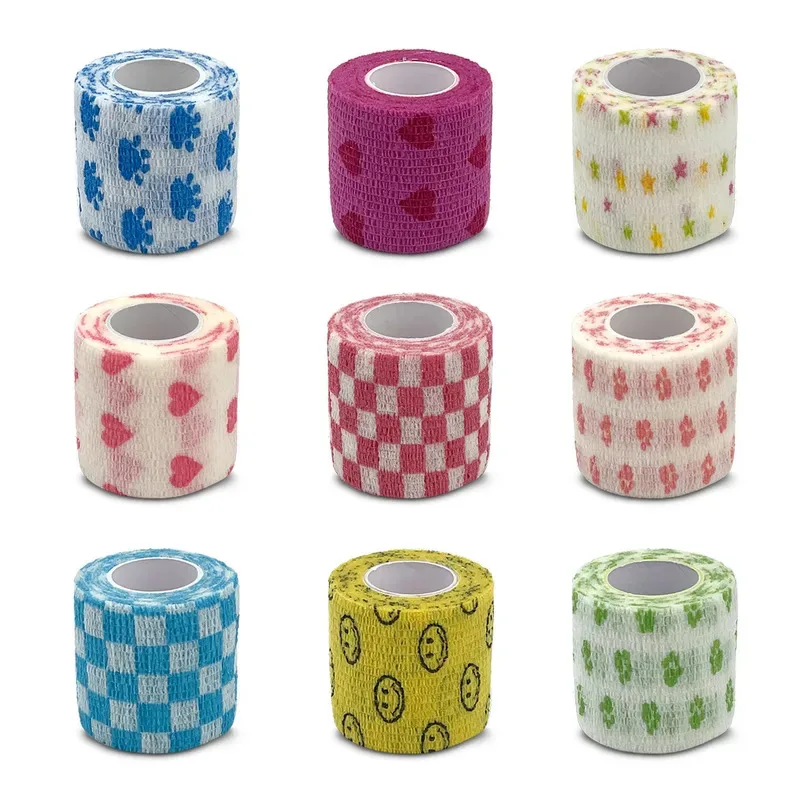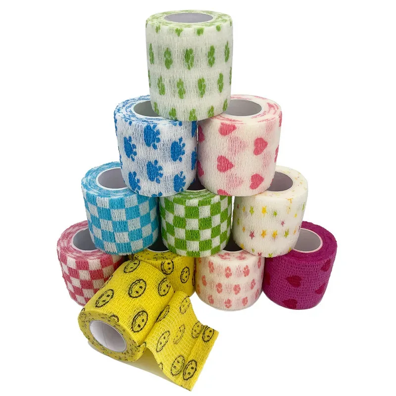 10 szt. drukowanych, samoprzylepnych, elastycznych bandażów o długości 4,8 metra, kolorowa taśma sportowa do palców, stawów i kolan dla zwierząt.