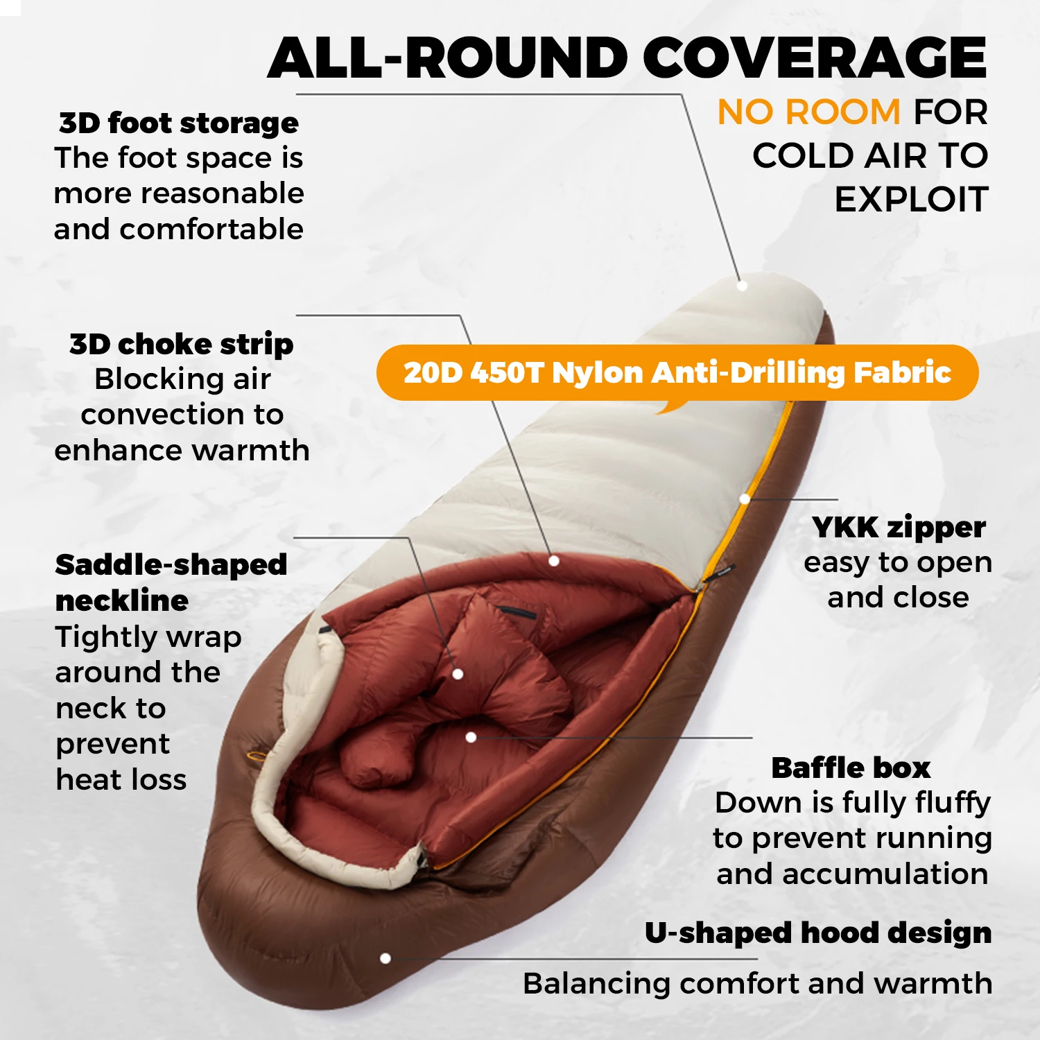 Naturehike Snowbird Śpiwór Mumia z Puchu Kaczy 4-Sezonowy Lekki Przenośny Profesjonalny Kempingowy Zimowy Unisex dla Dorosłych