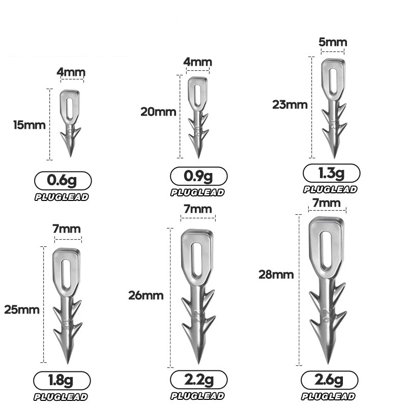 10 szt. Przynęty z zadziorami, obciążniki ołowiane 0,6g-2,6g, odlewane ciśnieniowo ciężarki wędkarskie do wkładania w miękkie przynęty, robaki, Neko Rig i Wacky Rig