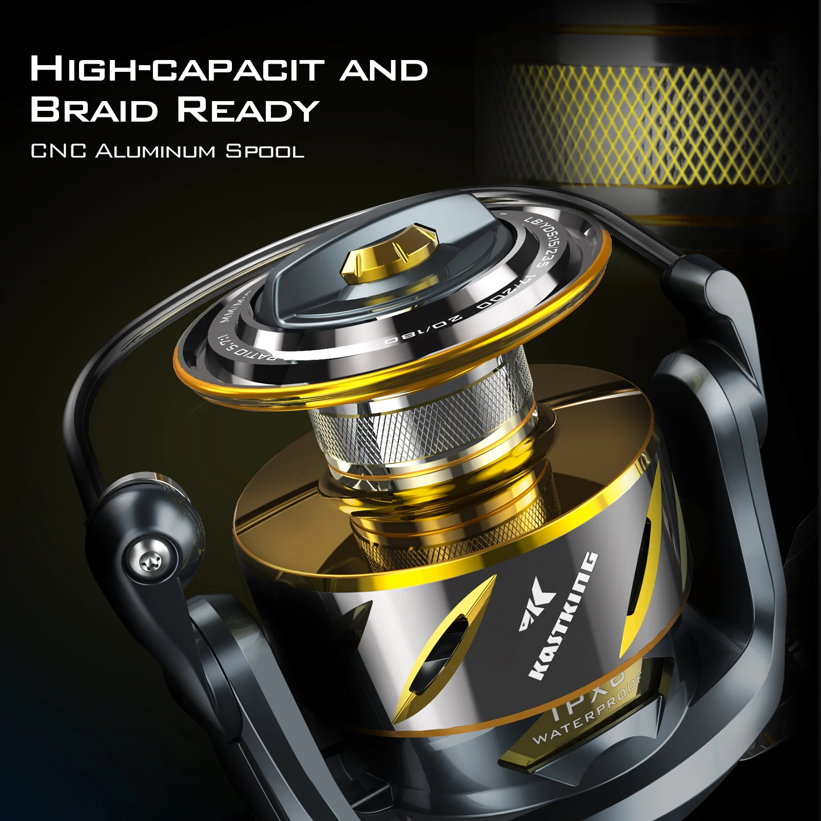 KastKing Kapstan Elite Kołowrotek spinningowy do połowów w wodach słonych, udźwig maksymalny 30LBs, kołowrotek do połowów dużych ryb, wodoodporność IPX6 i odporność na korozję.