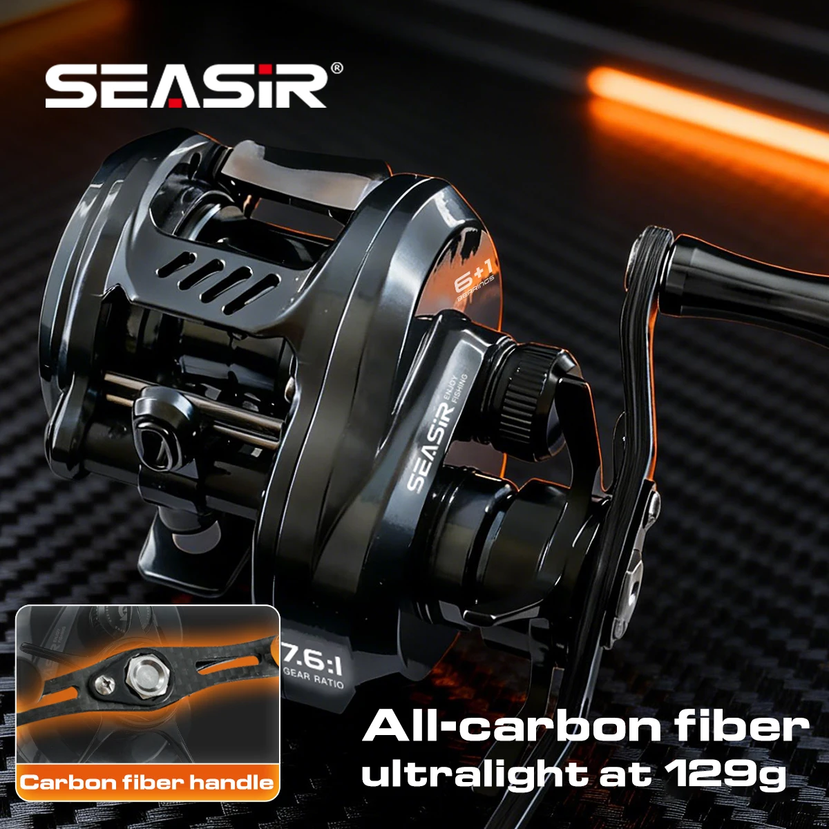 Kołowrotek wędkarski SEASIR DC Round Pro z cyfrowym sterowaniem, hybrydowe łożyska ceramiczne, darmowy pokrowiec na kołowrotek, ultralekki, w całości wykonany z włókna węglowego, przełożenie 7.6:1, 129g.
