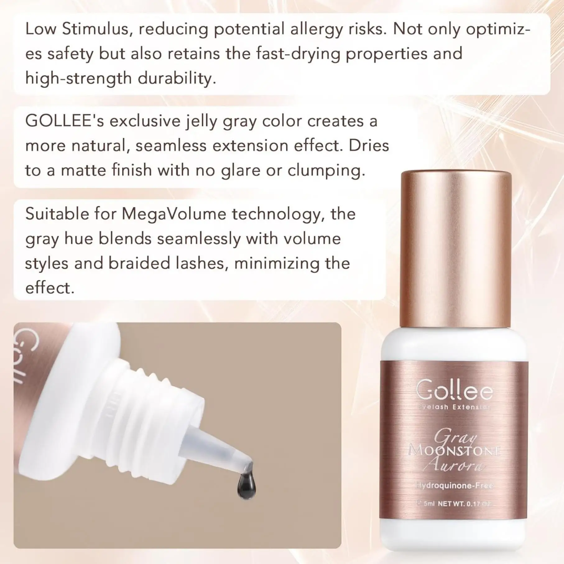 Klej do przedłużania rzęs GOLLEE Gray, szybkie utwardzanie 0,5-1 s, trwałość 6-8 tygodni, profesjonalny klej do rzęs do salonów.