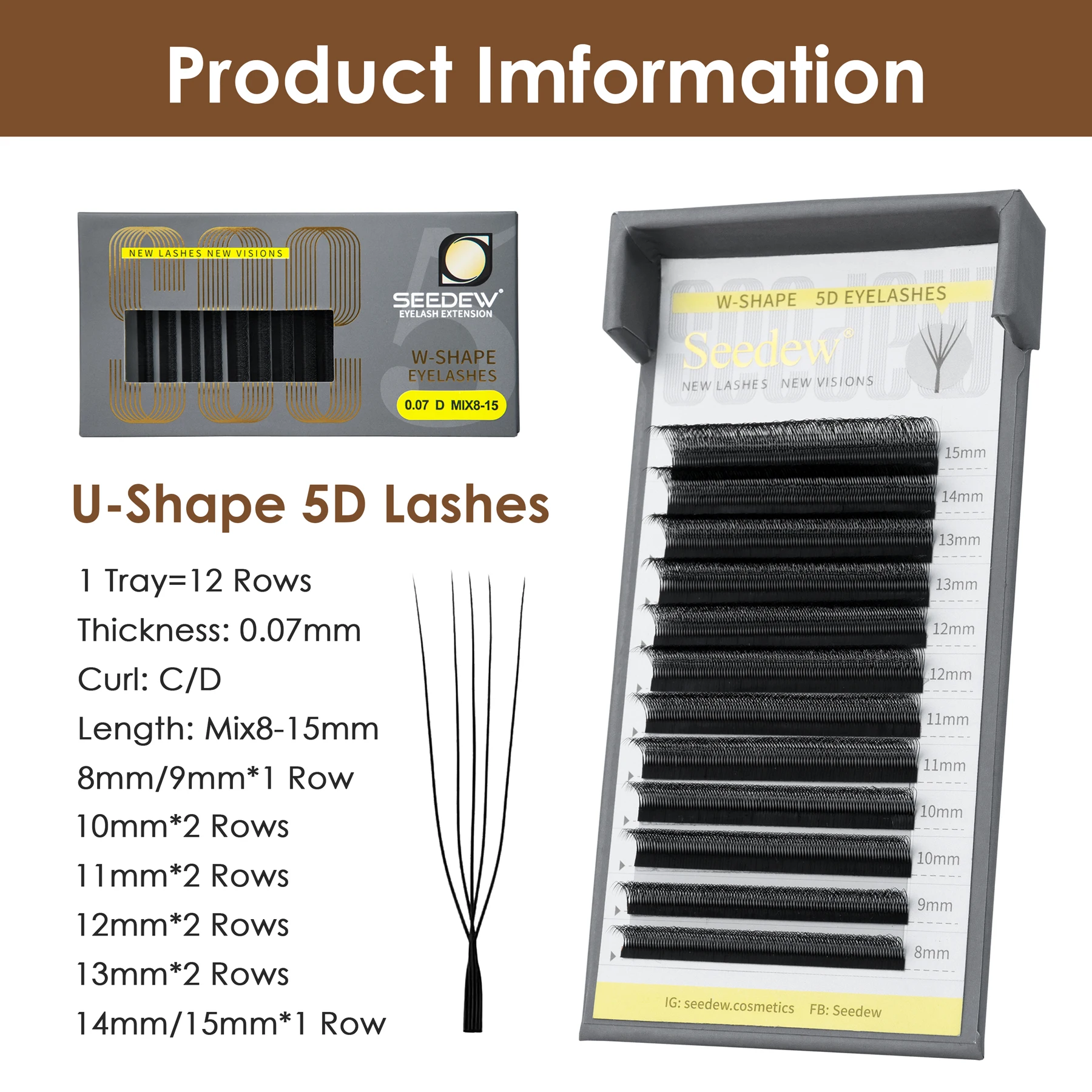 SEEDEW 5 Opakowań/Partia Rzęs 5D w Kształcie Litery U Naturalne Miękkie Rzęsy 5D U Premium z Norek Sztuczne Rzęsy