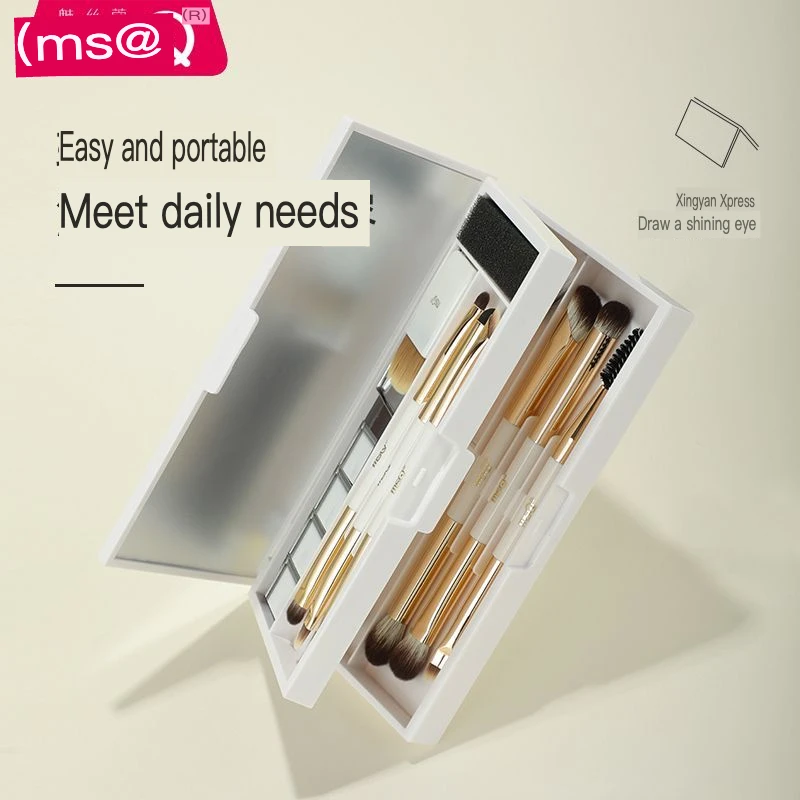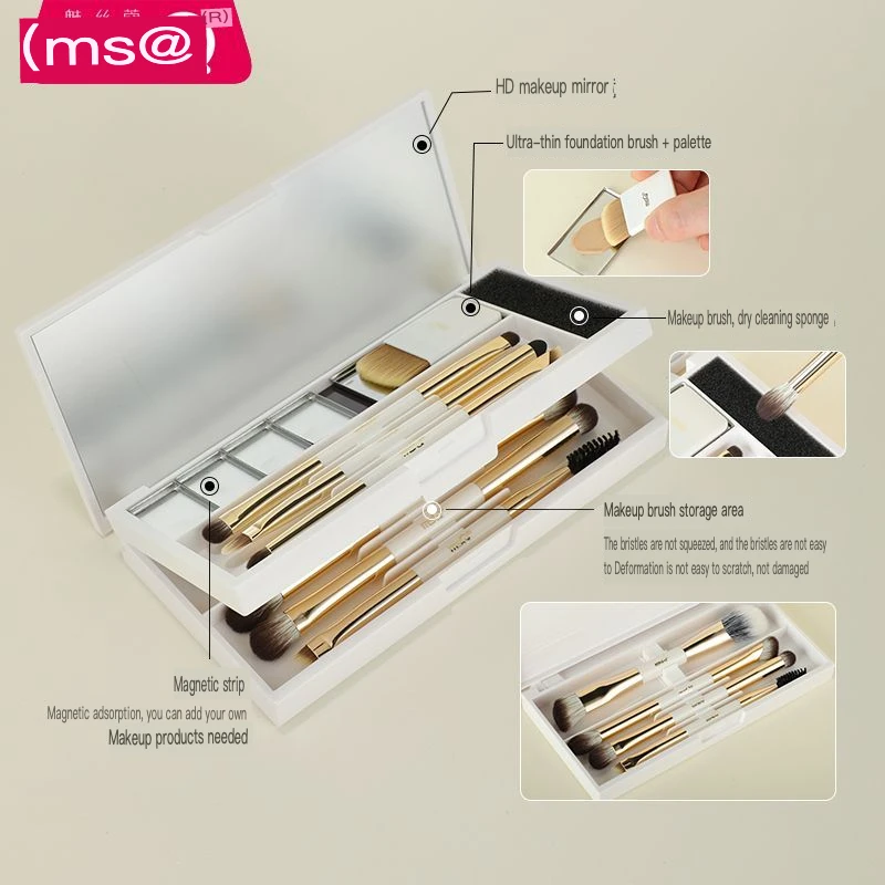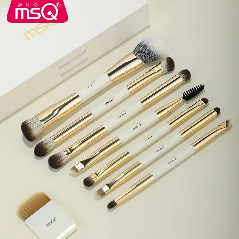Zestaw pędzli do makijażu MSQ, 8-głowicowy, dwustronny, w pudełku, przenośny pędzel do podkładu, pędzel do konturowania, pędzel do cieni do powiek, pędzel do cieni do nosa.