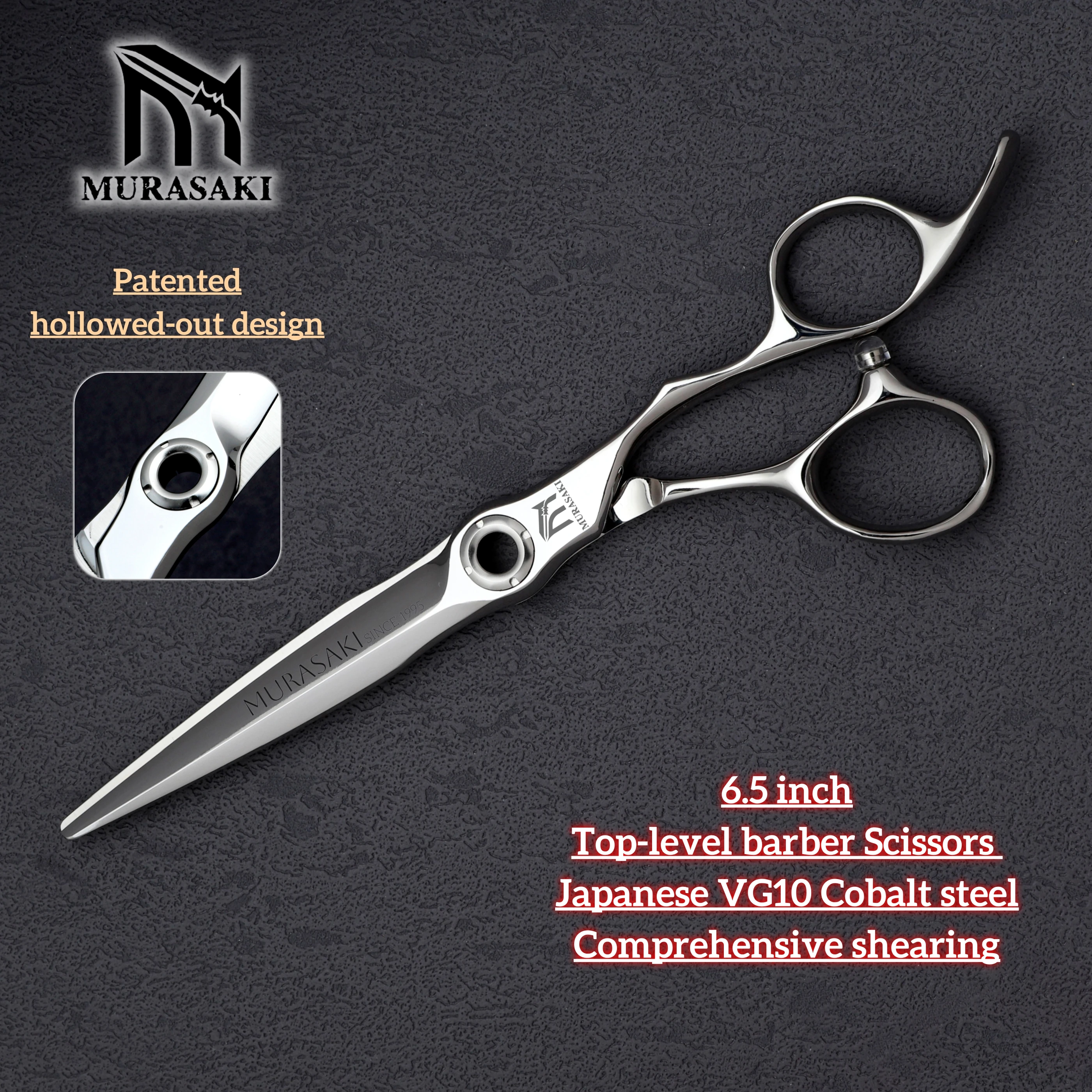 MURASAKI Najwyższej jakości nożyczki fryzjerskie, stal japońska VG10, 6,5 calowe nożyczki barberskie, opatentowany, ażurowy design, narzędzie do strzyżenia włosów