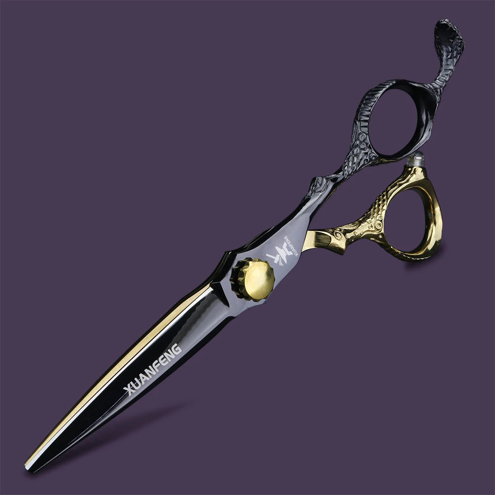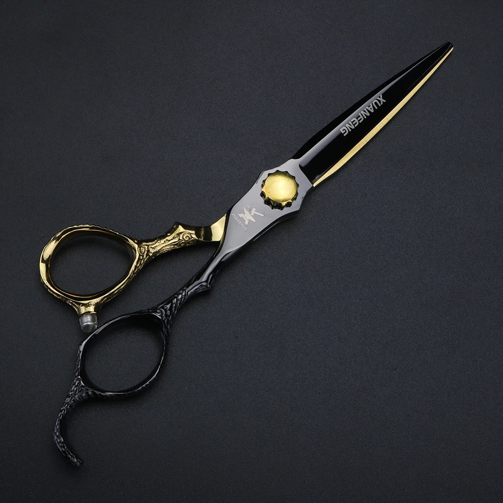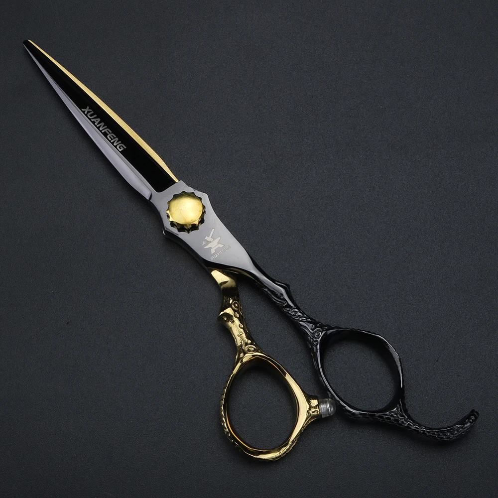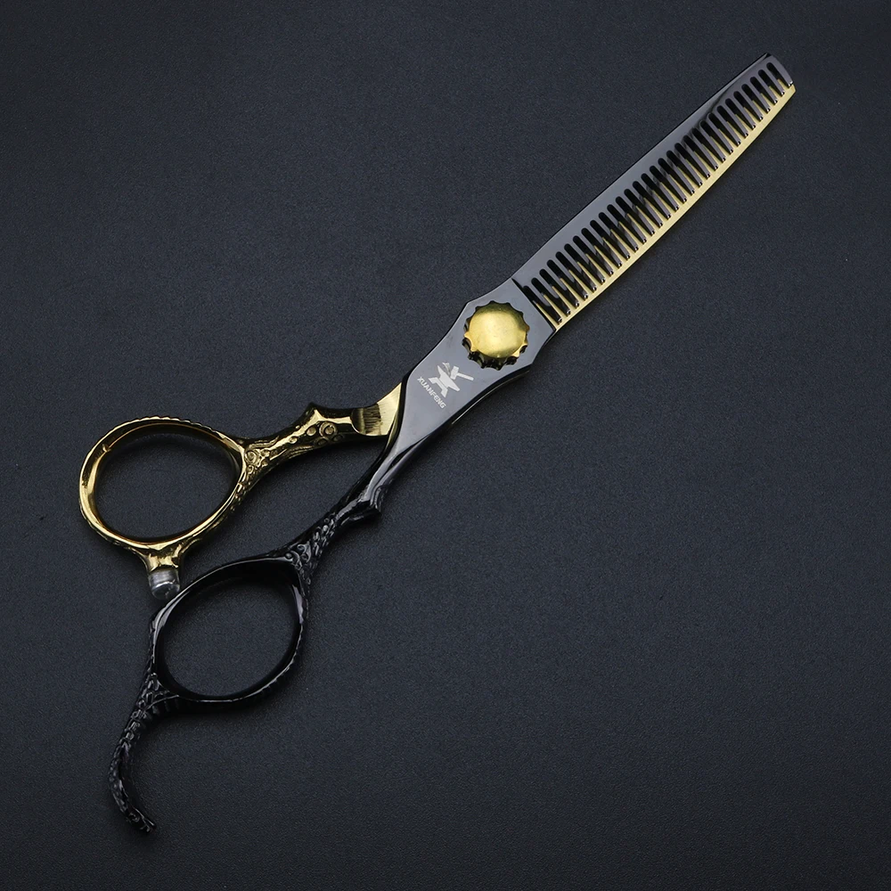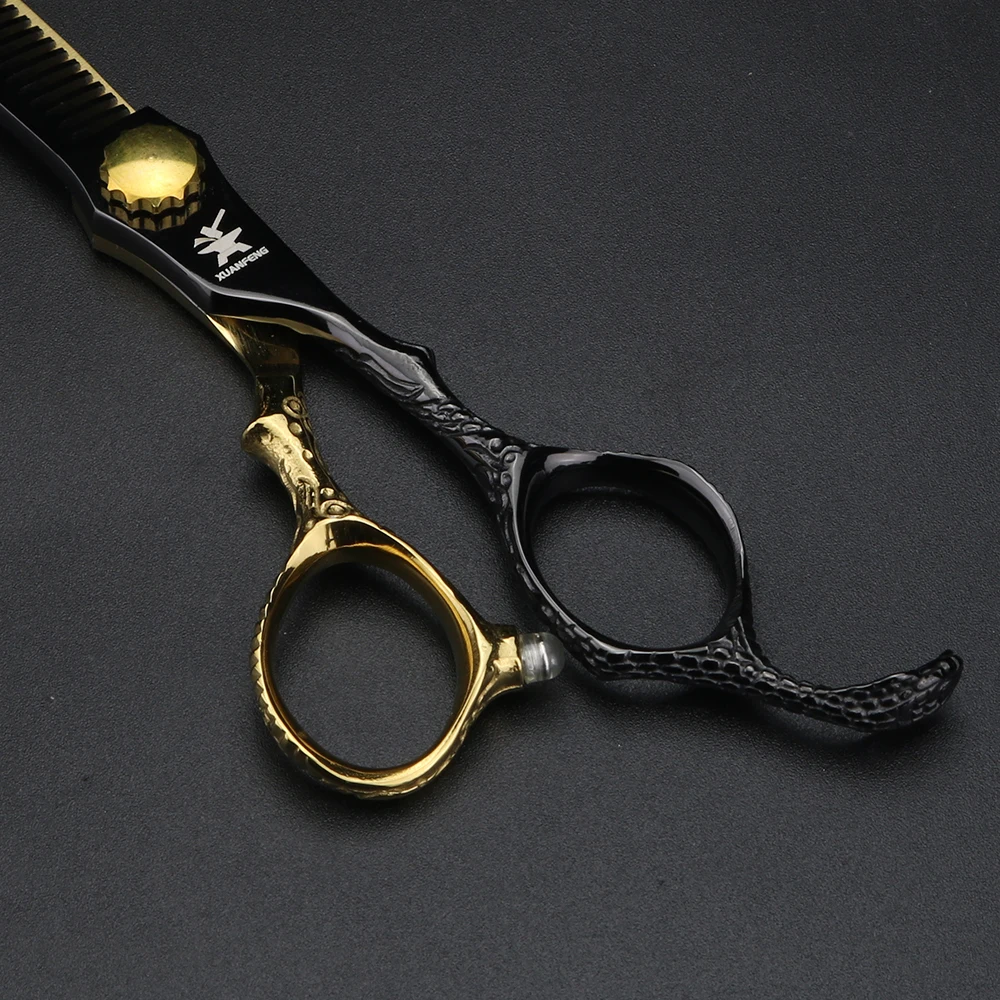 Nożyczki fryzjerskie XUANFENG 6-calowe, złote, z rękojeścią w kształcie kuby, nożyczki do strzyżenia i degażówki wykonane ze stali 440C