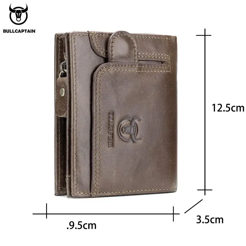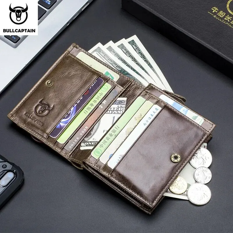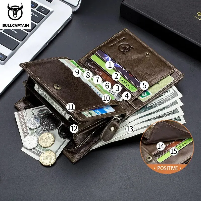 BULLCAPTAIN Męski portfel Bifold z blokadą RFID Portfele z prawdziwej skóry z 15 miejscami na karty