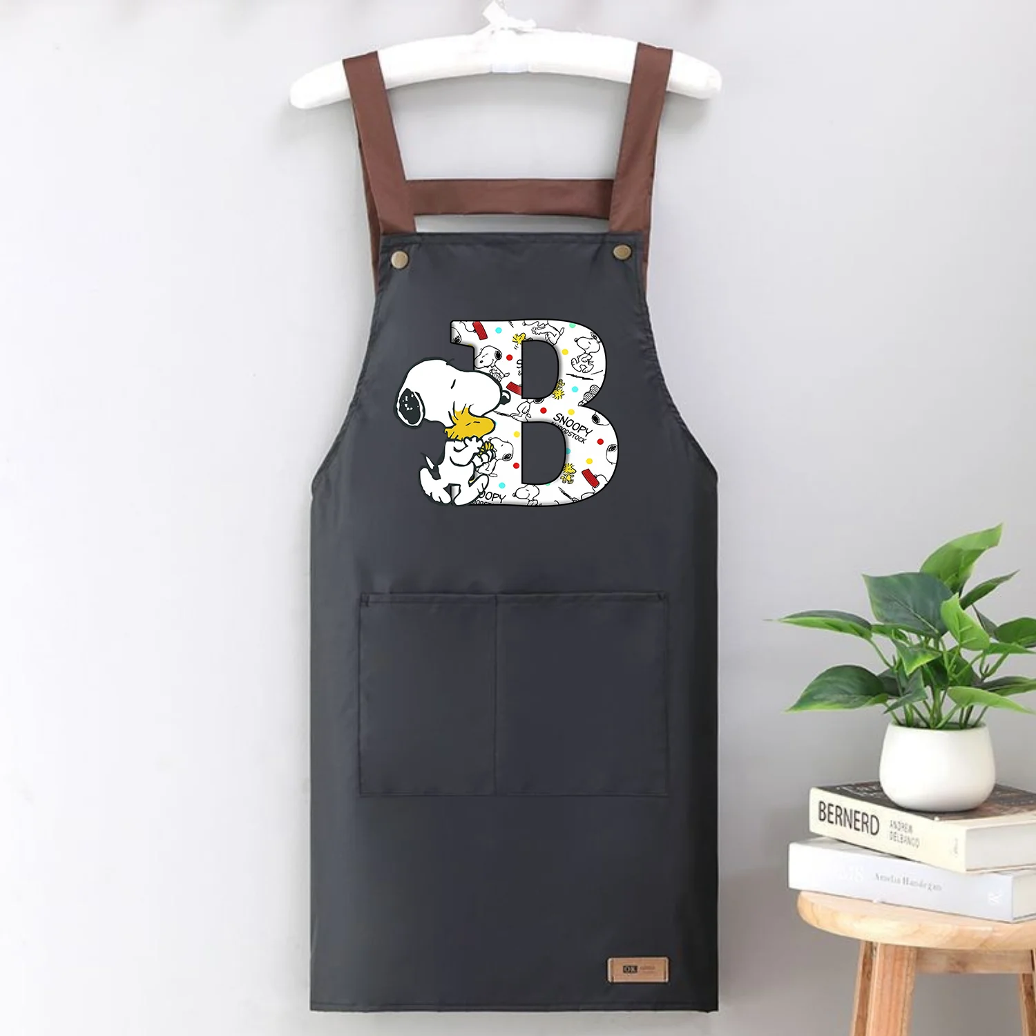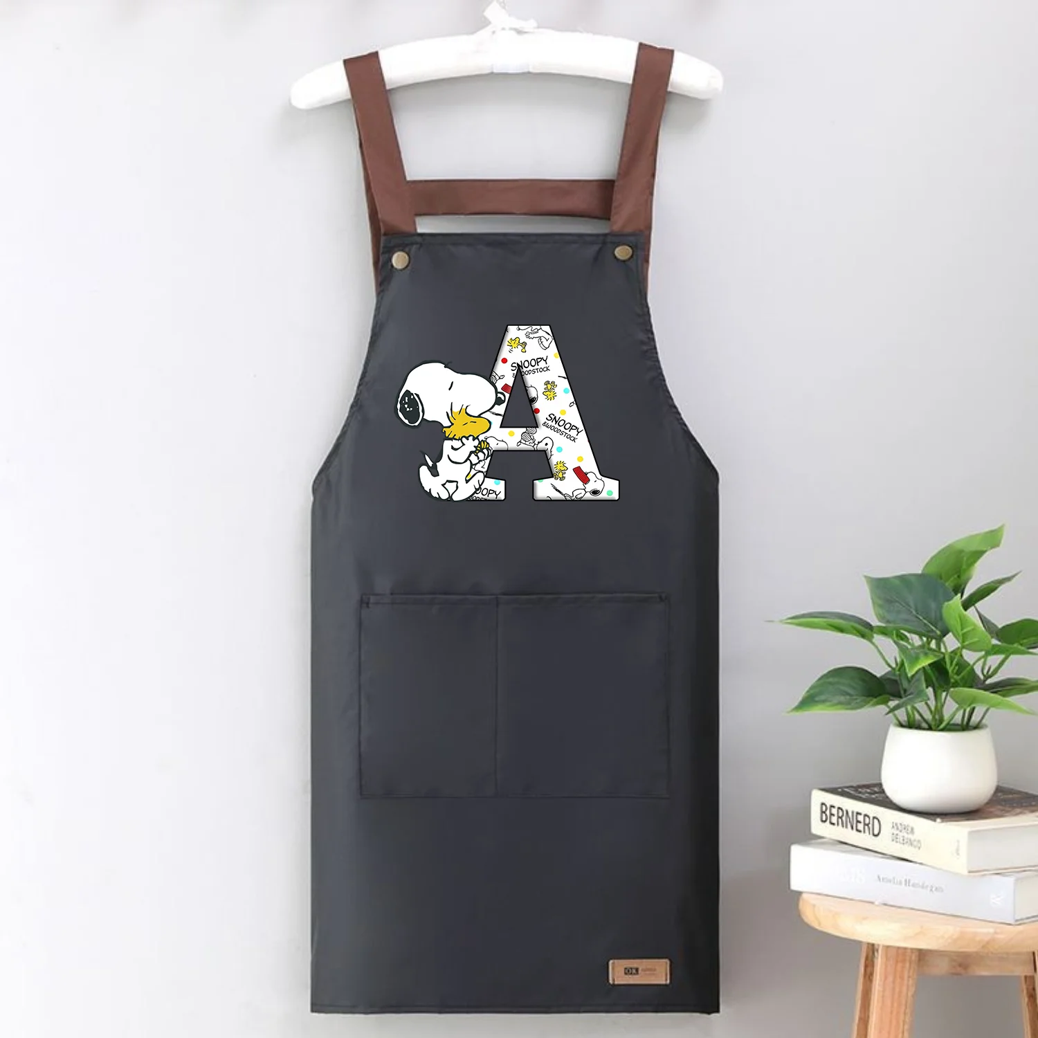 Fartuchy kuchenne Snoopy dla mężczyzn i kobiet, fartuch roboczy z kreskówkowym napisem, czarny fartuch szefa kuchni, do restauracji, sklepu, salonu kosmetycznego, studia paznokci, rekwizyt, uniform, prezent.