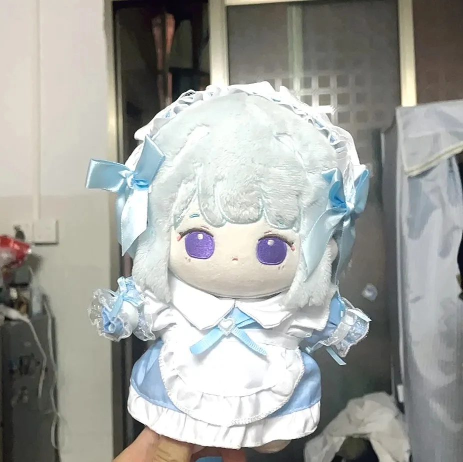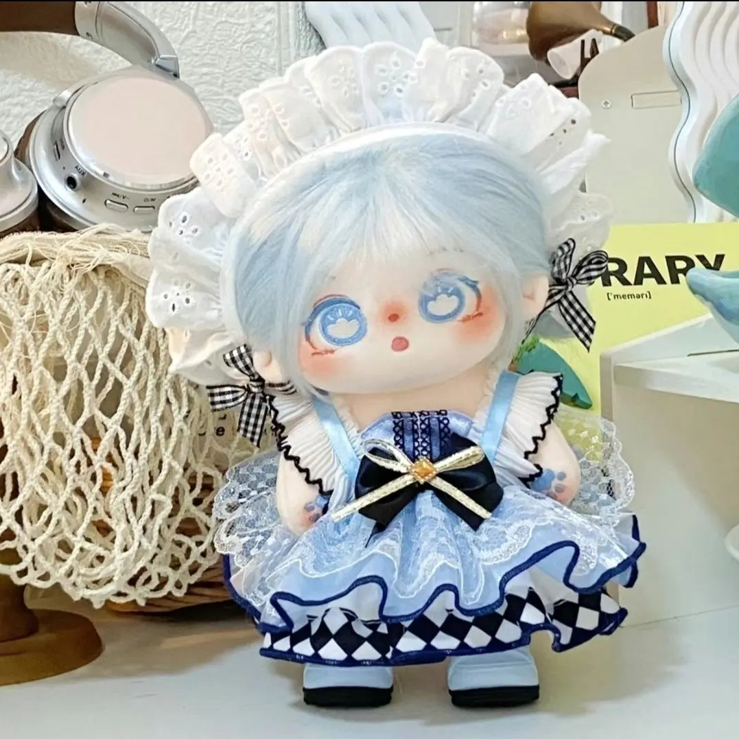 Ubranka dla lalek 20 cm, uroczy strój pokojówki, bawełniana pluszowa sukienka dla lalek, kostium kawaii dla pluszaków 20 cm, ręcznie robione akcesoria dla lalek