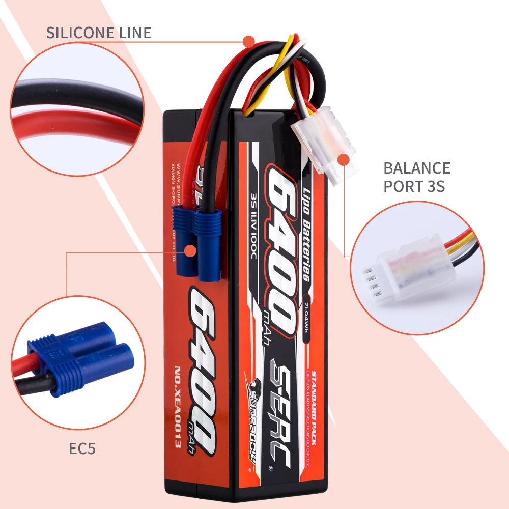 Akumulator Lipo SUNPADOW 3S 4S 11.1V 14.8V 6400mAh 100C w twardym obudowie, ładowalny, z złączem EC5 do pojazdów RC, samochodów, ciężarówek, czołgów, buggy, SIGP