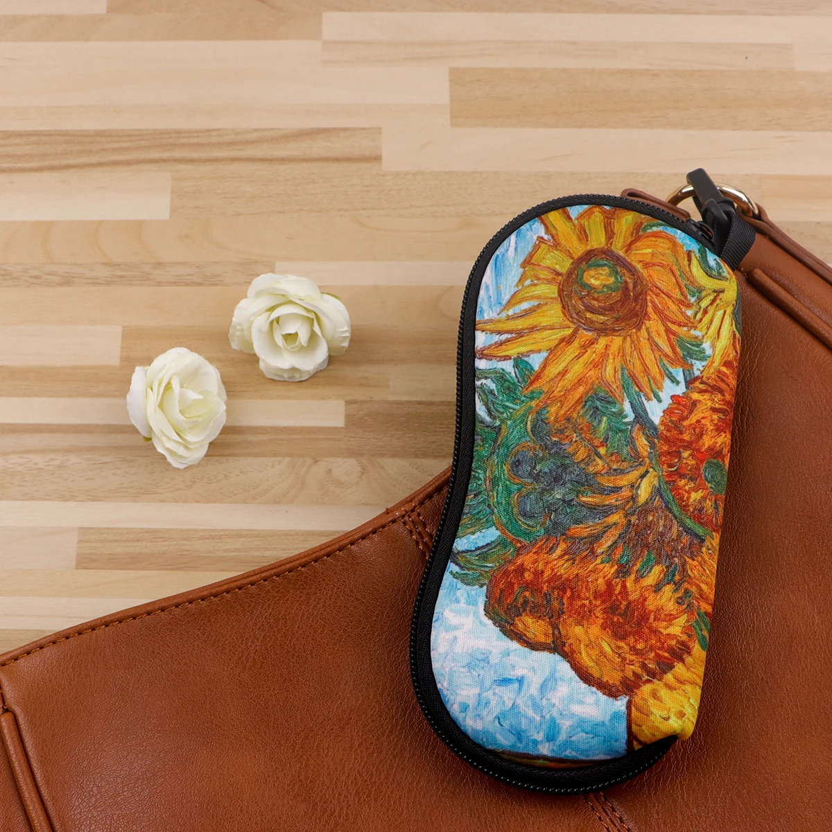 Van gogh pinturas a óleo óculos sacos de pano macio sacos de óculos de sol casos com zíper das mulheres dos homens caso de óculos