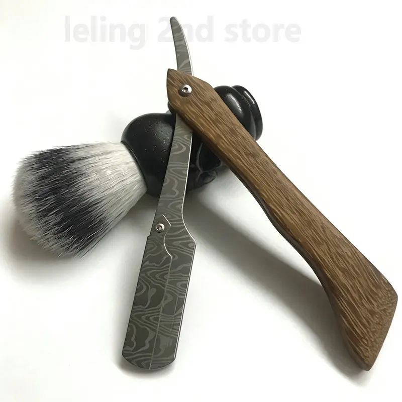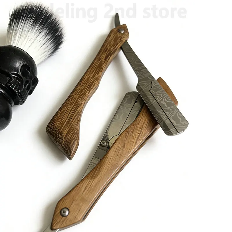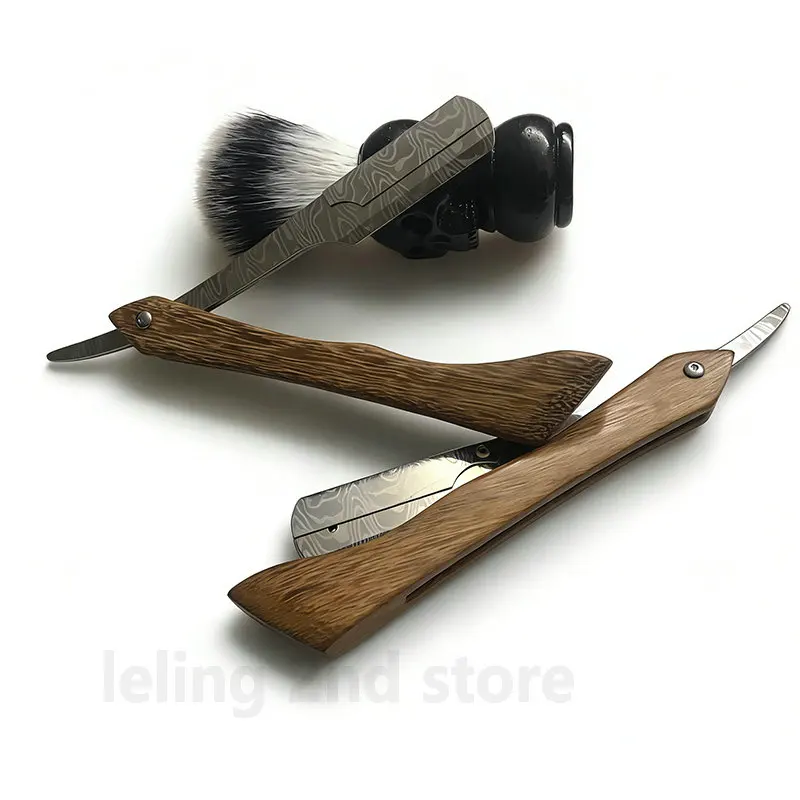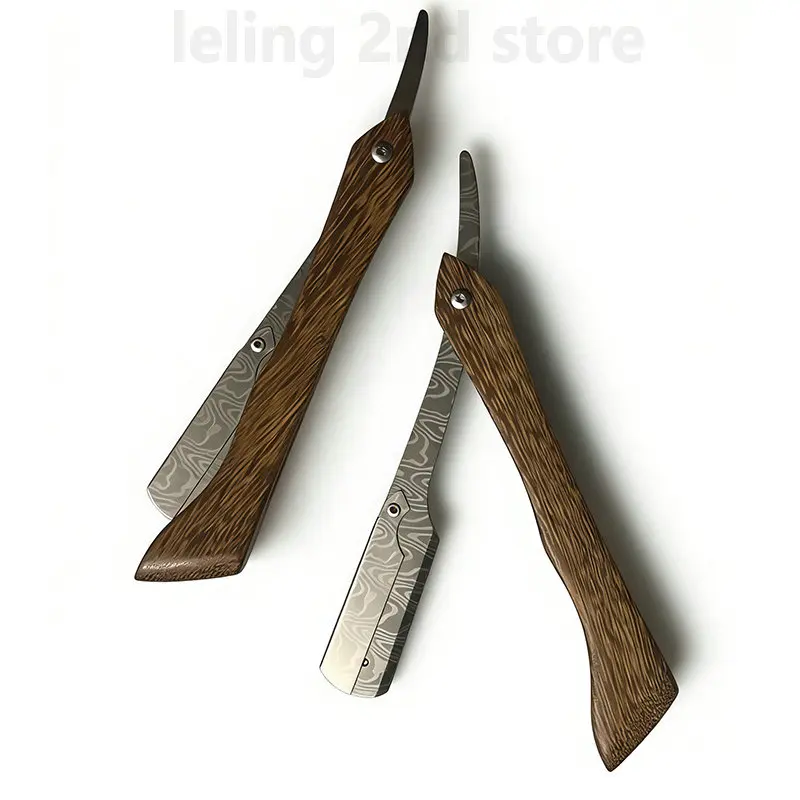 Navalha de Barbeiro Profissional de Madeira para Atacado, Navalha de Lâmina Reta de Aço Inoxidável Afiada, Navalha Dobrável de Madeira para Barba