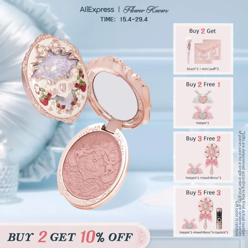 Flower Knows Strawberry Rococo Series Blush em relevo 5g Blush em pó
