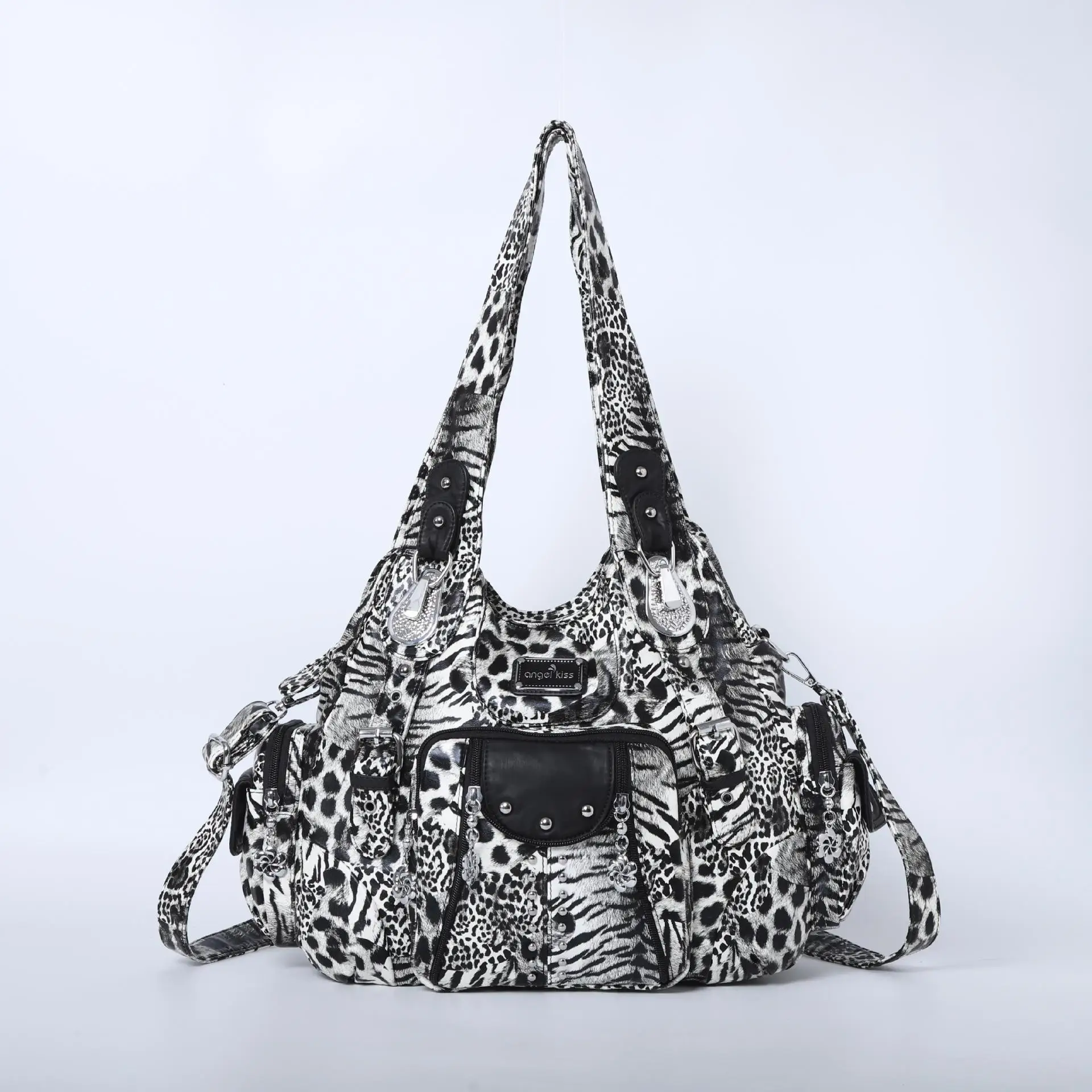 Bolsa feminina vintage de moda, bolsa grande de ombro em couro sintético com estampa de leopardo, bolsa de ombro de grande capacidade, bolsa phane.